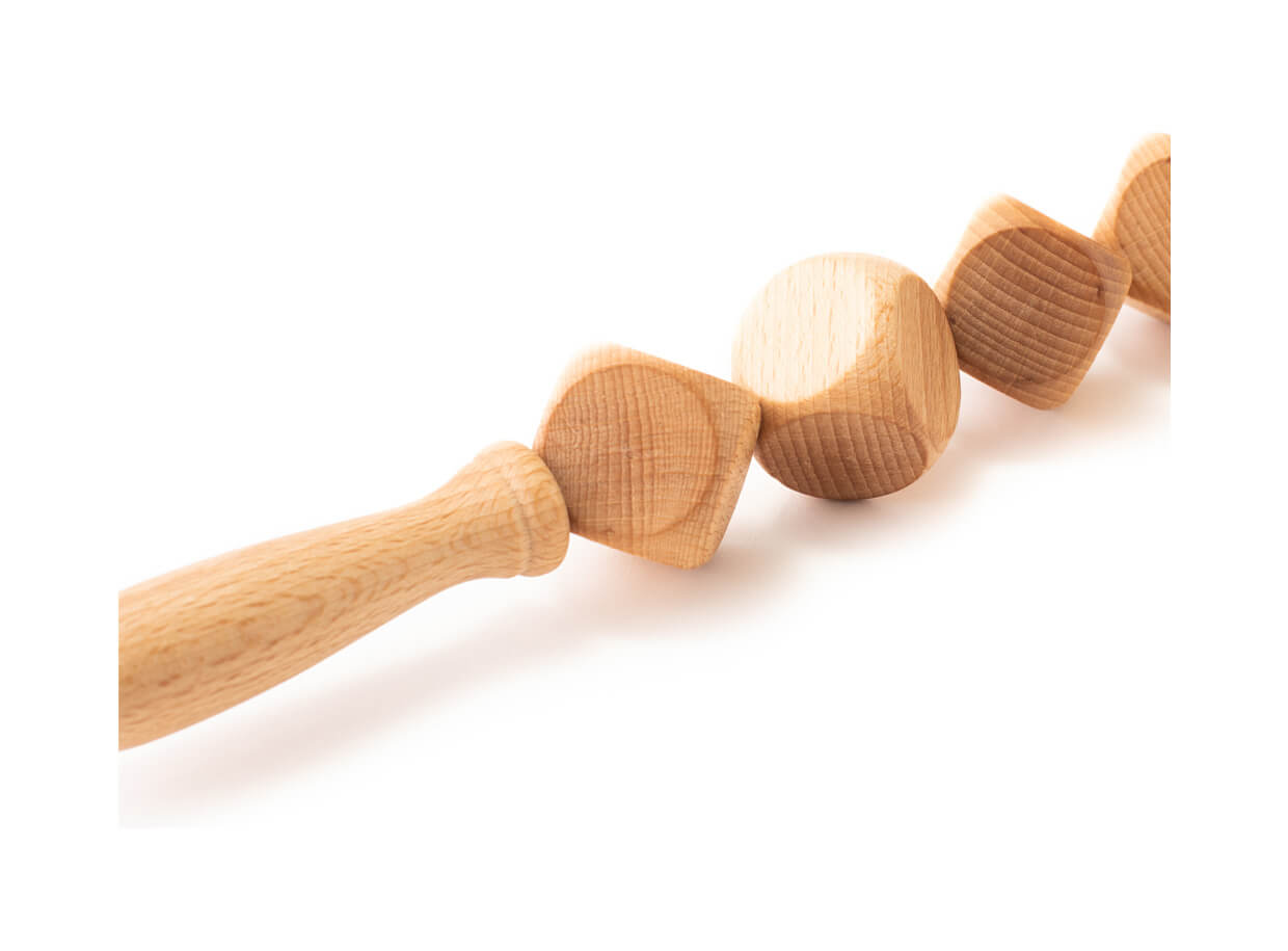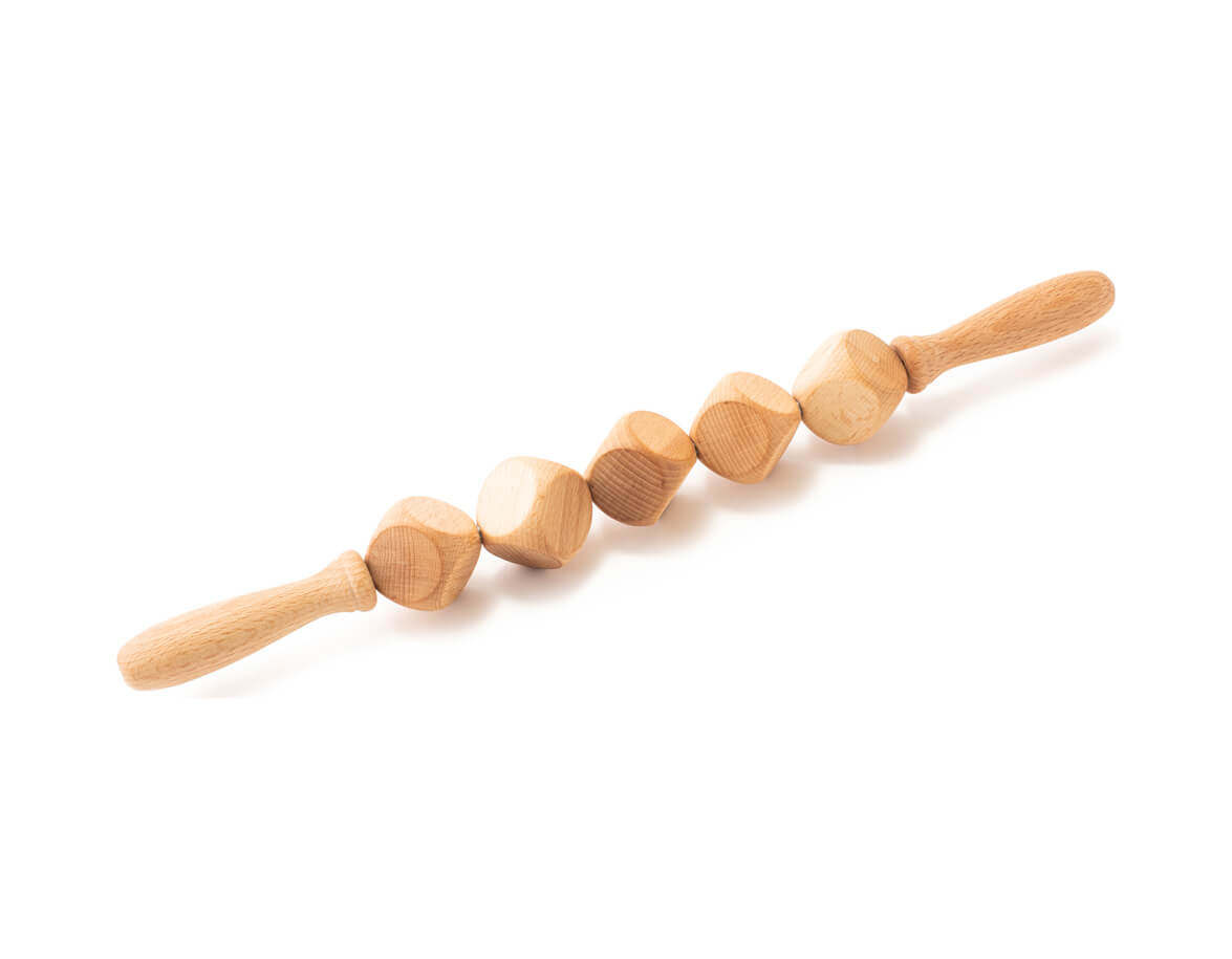 5 db, lekerekített élű, bükkfából készült kockákból álló masszírozóhenger. A formázott fogantyúk kényelmesen illeszkednek a tenyérbe. A henger alkalmas vastagabb bőr alatti zsírréteg, narancsbőr, illetve megereszkedett bőr esetén a problémás testrészek masszázskezelésére, mint például a comb, fenék, has, csípő és a karok.