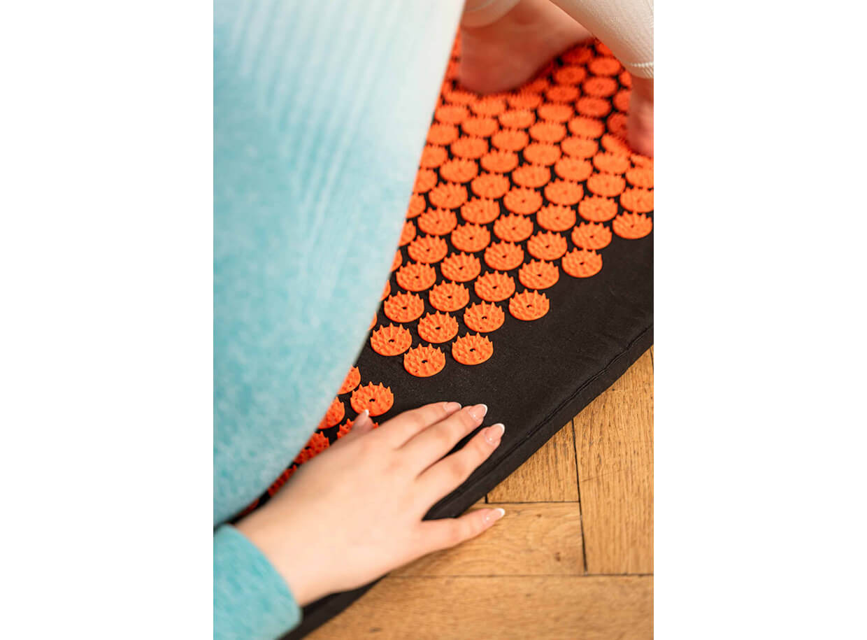 Az akupresszúrás alátét teljesen rugalmas és a padlóra teríthető, vagy bármilyen üléshez igazítható. Az alátéten és a félhengeren ajánlott ruha nélkül, vagy csak vékony ruharétegben helyezkedni. Használhatóak minden nap, 5-30 percig maradhatnak rajtuk, igénytől függően.