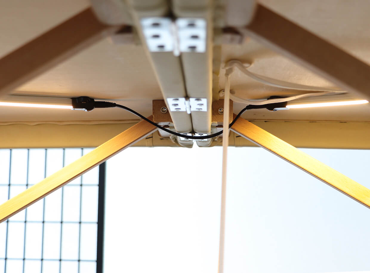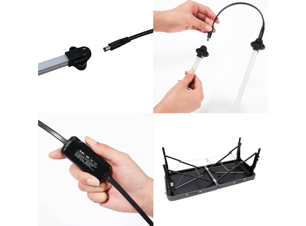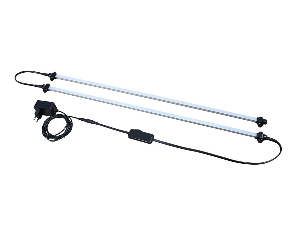 A világítási rendszer két 70 cm hosszú LED szalagot tartalmaz, amelyek alumínium szerkezetbe vannak beágyazva. A csomag tartalmaz egy csatlakozó kábelt LED szalagokhoz, egy kábelt fényerőszabályzóval, egy 2 m kábelhosszúságú hálózati adaptert és egy fához való önmetsző csavarkészletet.