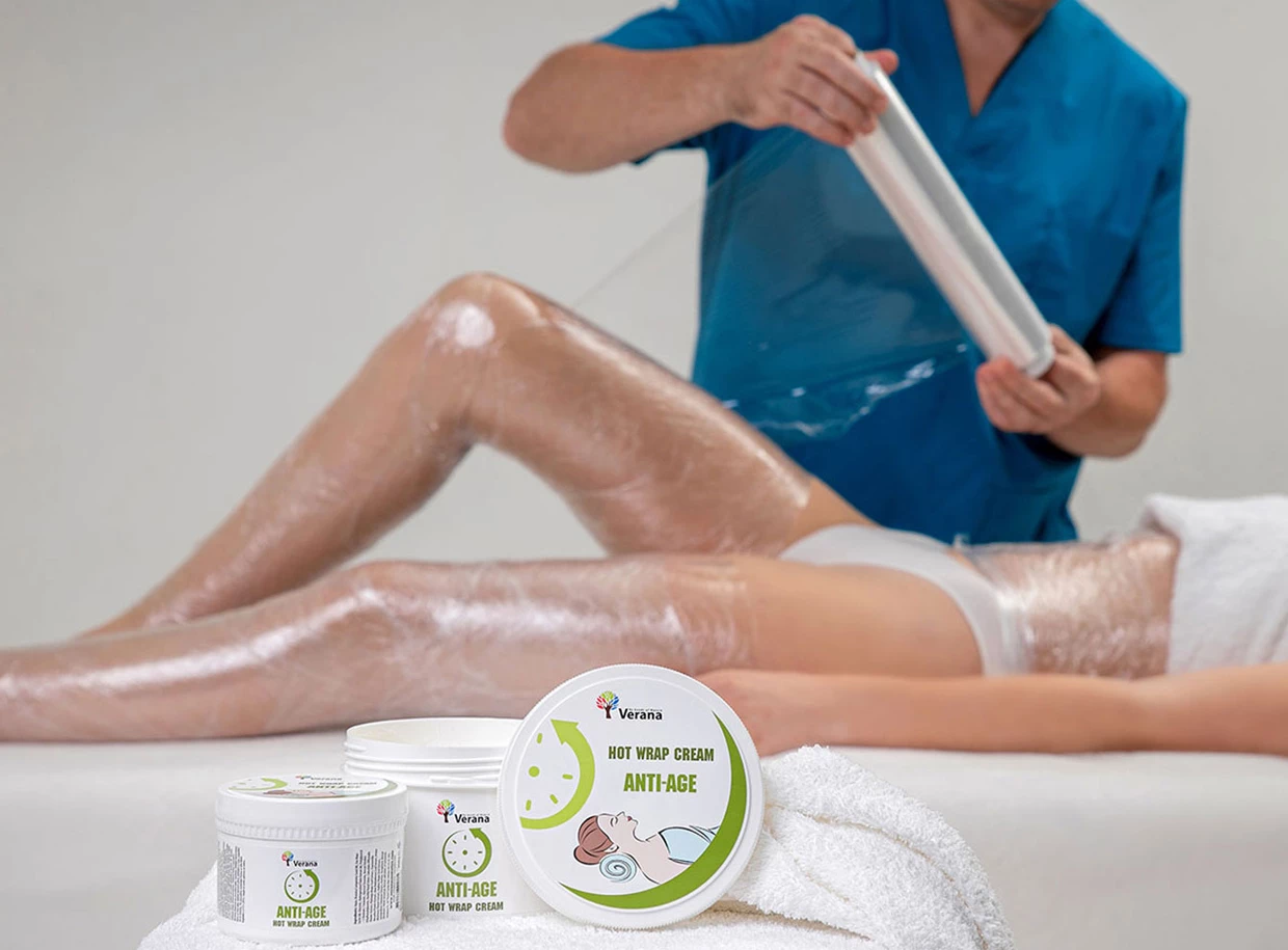 A Verana Anti age fiatalító forró testpakolás hatékony testápolásra készült a Hot Wrap kozmetikai eljárás során a SPA szalonokban és otthon is. Víz alapú, melynek köszönhetően összetevői a bőr minden rétegébe mélyen behatolnak. A krém hatékonyan hidratálja és táplálja a bőrt a teljes eljárás során.