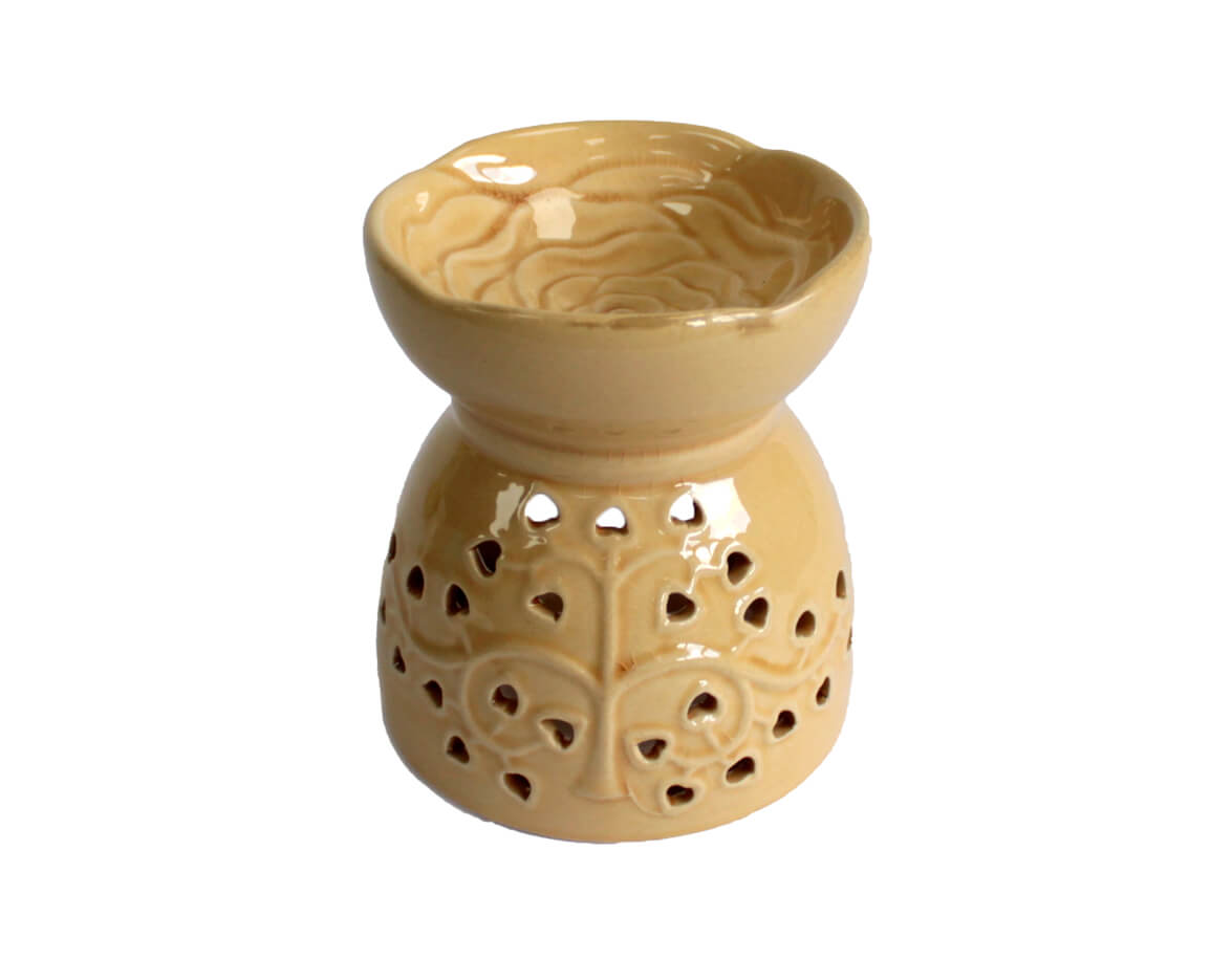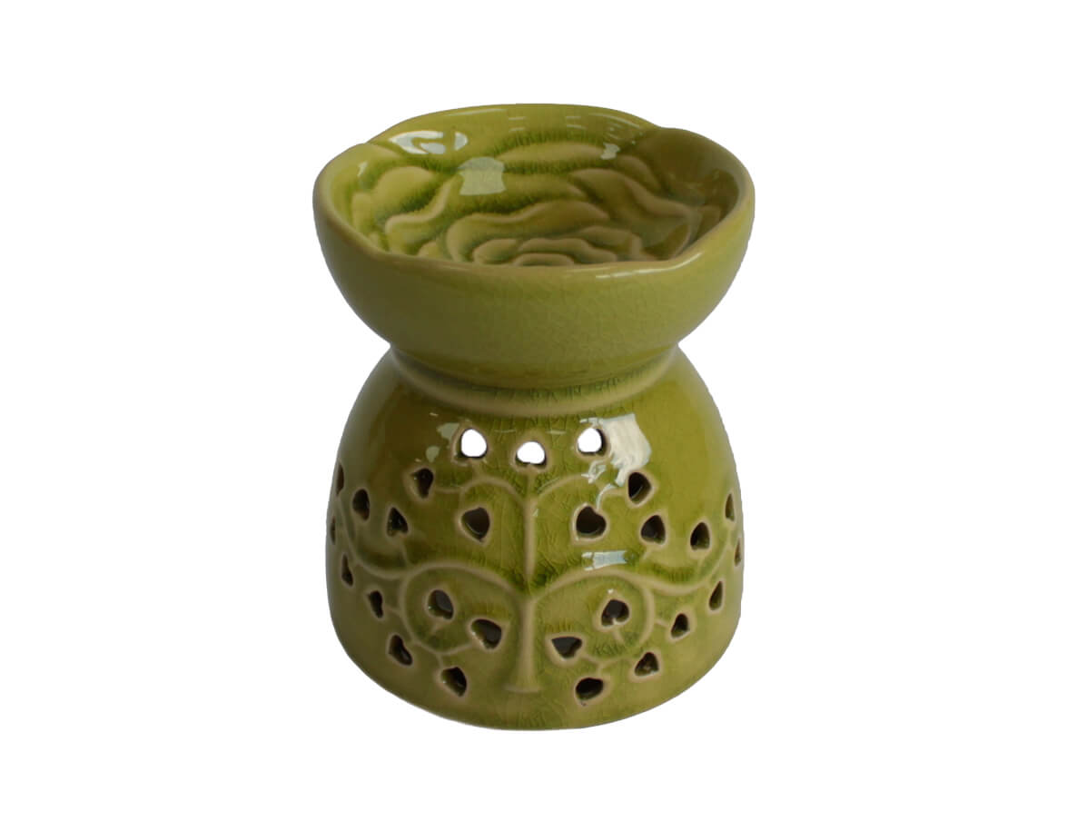 Kék zománccal borított kerámiából készült aromalámpa, amely alapján az életfa lágy domborműves motívuma található, a felső tál pedig szirom formájú. Vonzó természetes kialakítású és megfelelő dekoráció belső térbe. Támogatja a nyugodt és pihentető légkört, illatosítja a masszázsszalonok, egészségügyi intézmények és háztartások helyiségeit.
