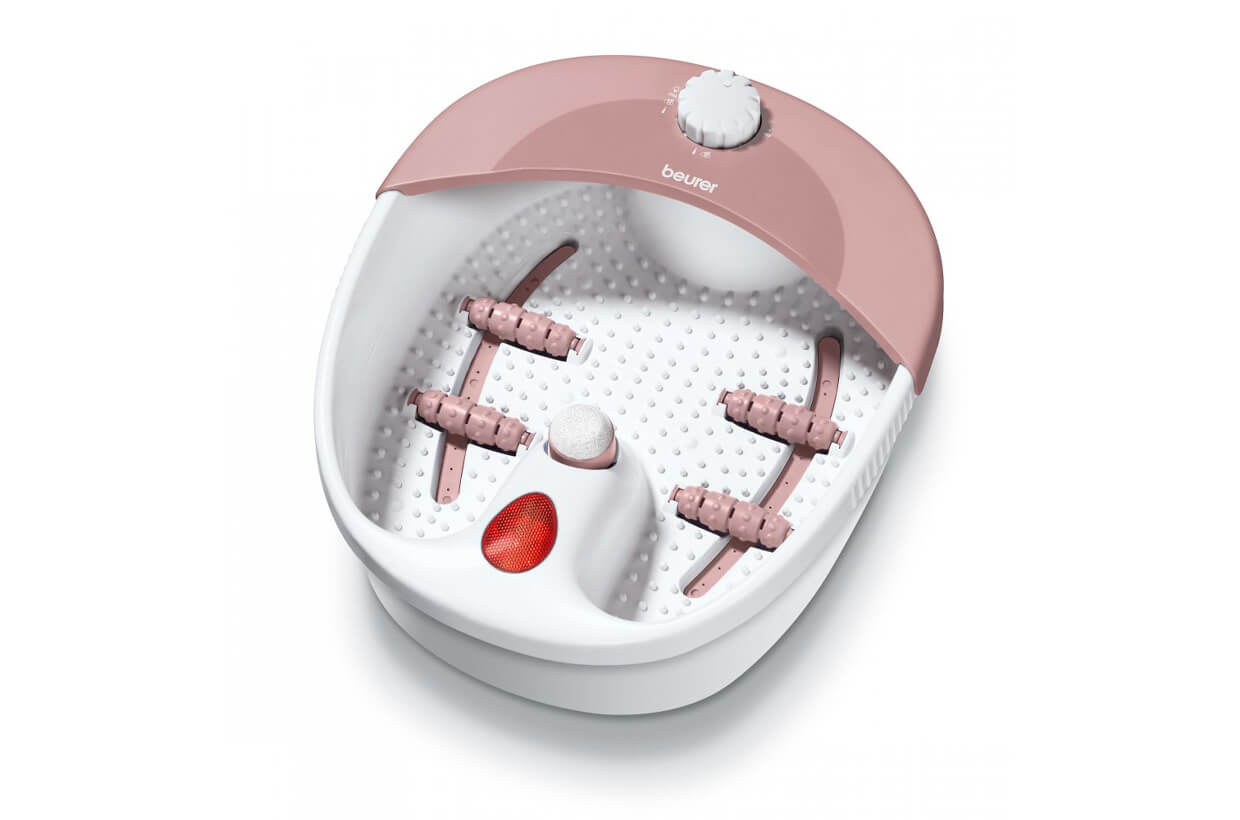 A BEURER FB 20 masszírozó kád az otthoni lábmasszázsra szolgál. Kiválaszthat egyet a 3 kínált funkciója közül: vibrációs lábmasszázs, pezsgőmasszázs vagy csak a hőmérséklet fenntartása. Felhasználható a vízmentes lábmasszázsra is. A csomagolás részét képezik szintén a kiterjesztések a pedikűrhöz és a masszírozó hengerek is. A masszírozó kád megnyugtató infravörös fénnyel van ellátva, tehát akár kellemes hangulatot beállíthat. A további tartozékai közül, érdemes megemlíteni a masszázst támogató betétet és a három cserélhető kiterjesztést: masszírozó kiterjesztést, kefét és a keménybőr eltávolítót.