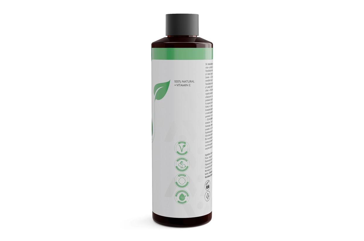 A masszázsolaj tápláló és bőrpuhító növényi olajokon (napraforgó, repce, szőlő, mandula és ricinus) alapul.