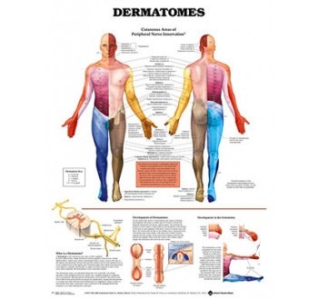A dermatóma a bőr, egyetlen gerincvelői ideggel beidegzett területe. A neurológiában a gerinc károsodás területének a megállapítására szolgál. A plakát ábrázolja a dermatómát és azon bőrterületeket, amelyek a perifériás idegek területeihez tartoznak, továbbá a beidegződést, a dermatóma fejlődését és a végtagok dermatómáját is.