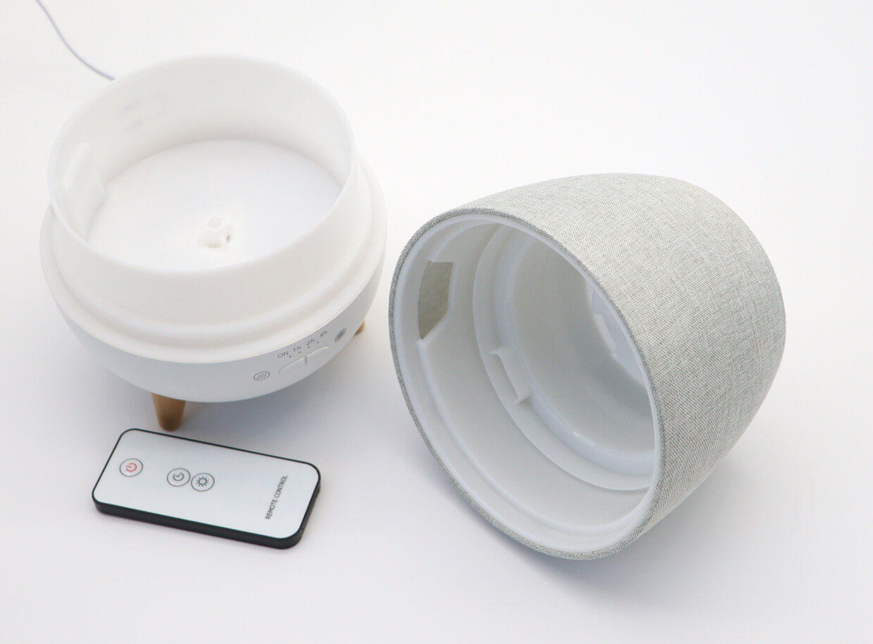 Nagyon kellemes kialakítású, csendes készülék, modern, semleges szürke színben, bármilyen térbe illeszkedik. A lágy fény éjszakai lámpaként vagy tompított világításként is szolgál a masszázsszalonban, és a párásítástól függetlenül használható.