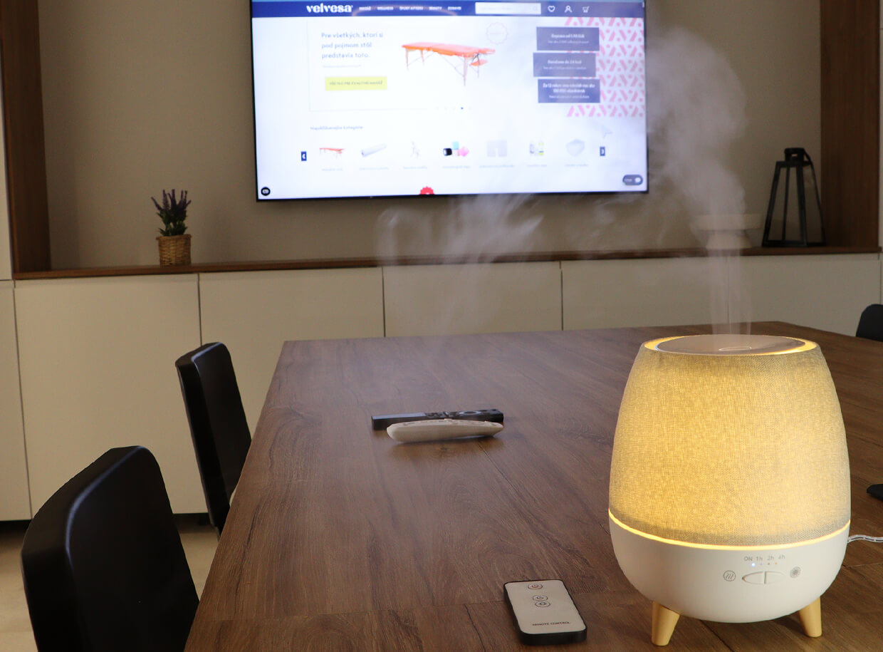 A gyengéd vízgőz nedvesíti a levegőt, és az illóolajok hozzáadása után a szervezetre és a pszichére is terápiás hatást fejt ki.