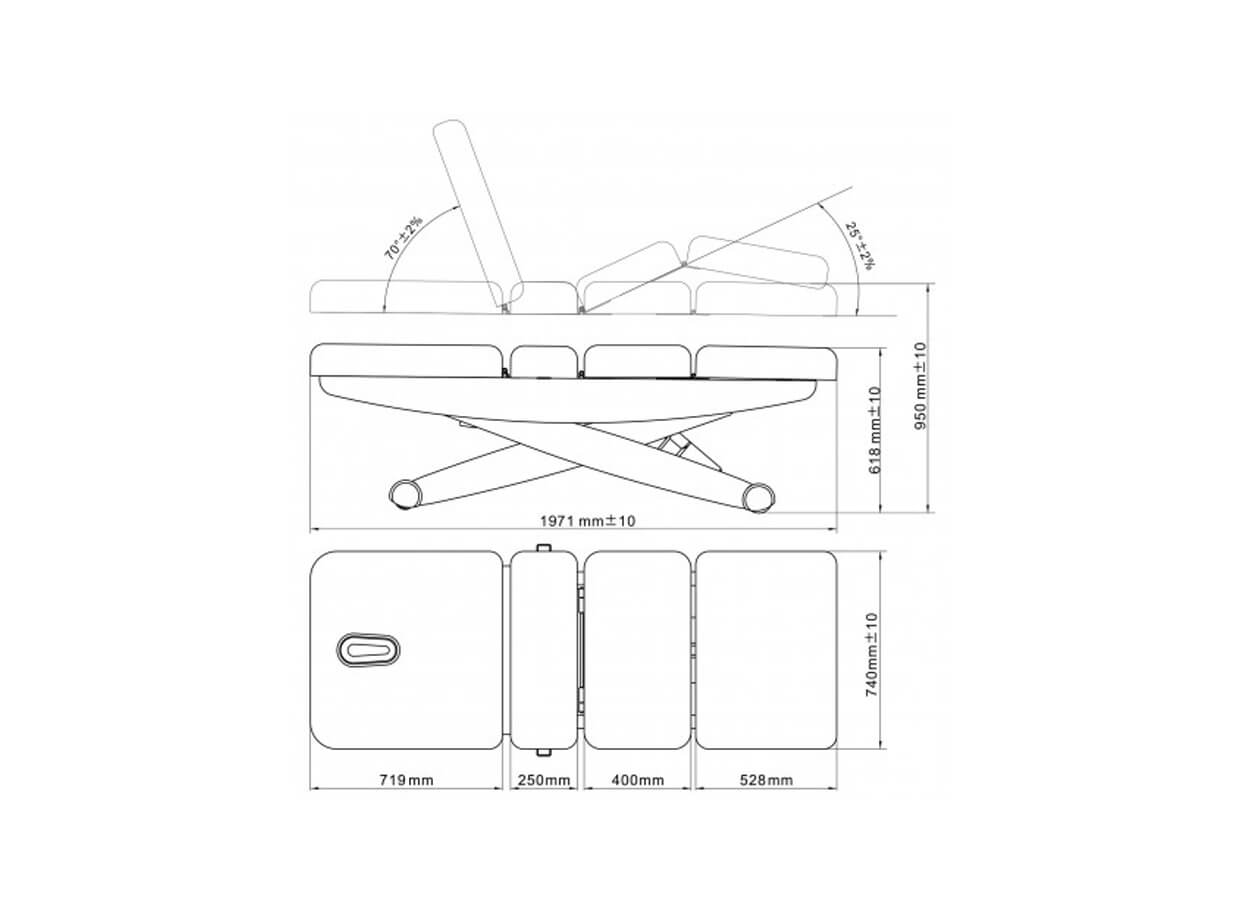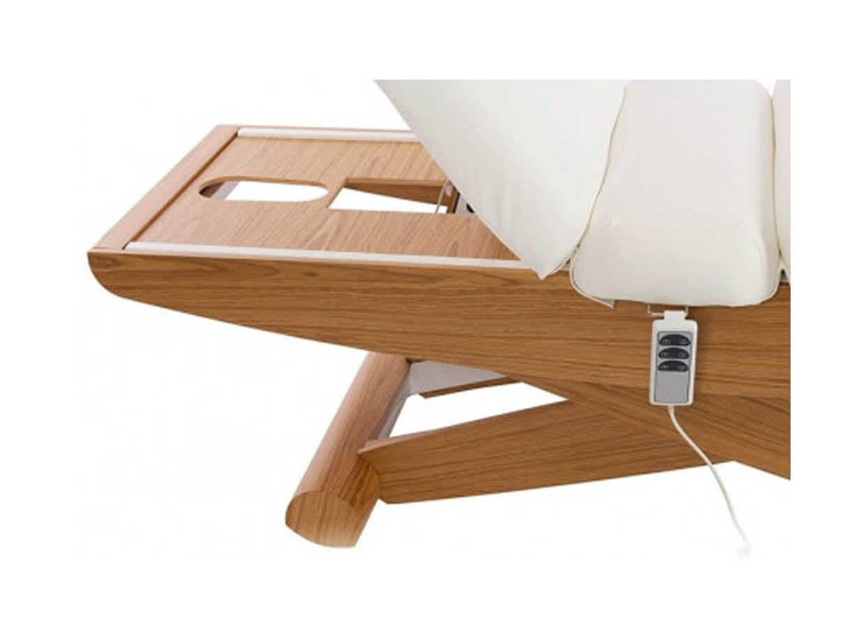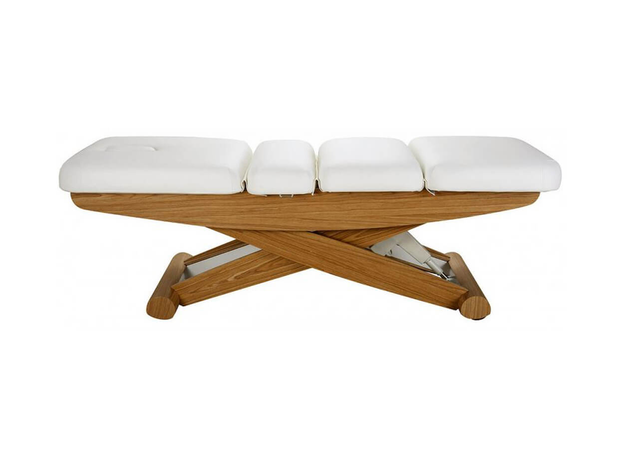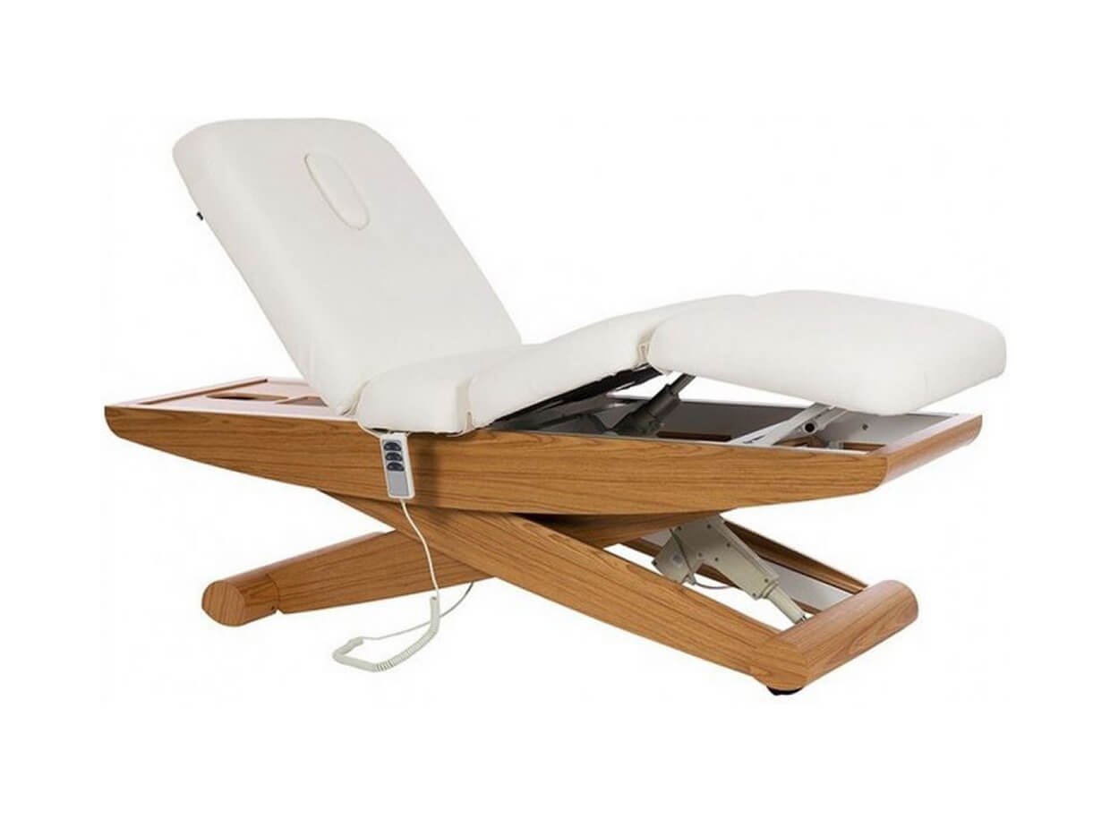 A LUNA SPLIT E3 SPA elektromos ágy fába rejtett fémszerkezettel rendelkezik. A kellemes természetes kivitel magas kényelemmel kombinálva ezt az ágyat a wellness részleg egyik luxus darabjává teszi. Az ágy szerkezete olló alakú, így az ágy magasságának változtatásakor nem mozdul el a térbe, mint a hagyományos szerkezetű ágyak.