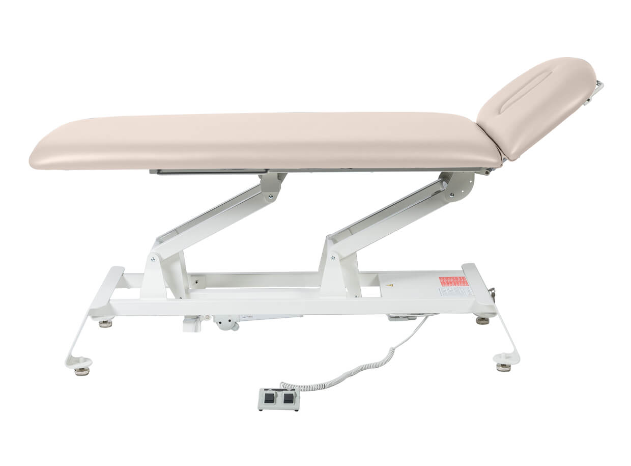Az akár 270 kg-os teherbírásnak köszönhetően ez az ágy a még nehezebb vendégeket is elbír, és teljes erőből hátra dőlhet a masszázs során. A csendes és megbízható motor a szerkezet alsó részén található. Kulccsal zárható, zárás esetén az ágy magassága nem állítható.