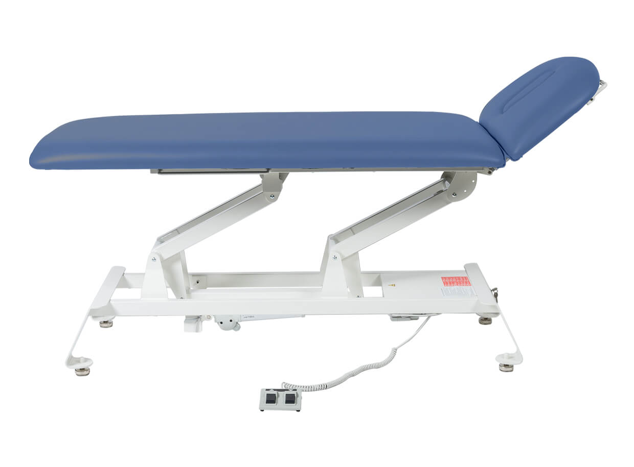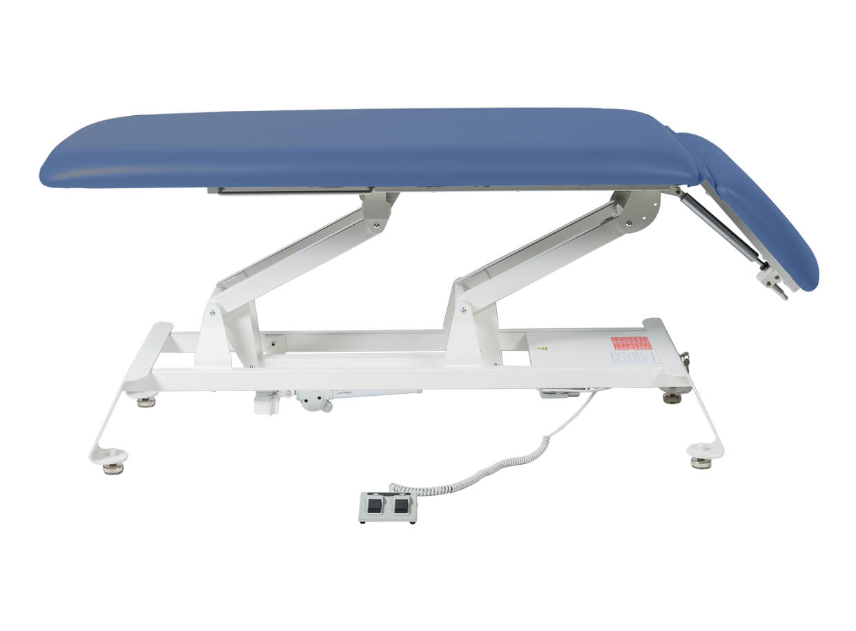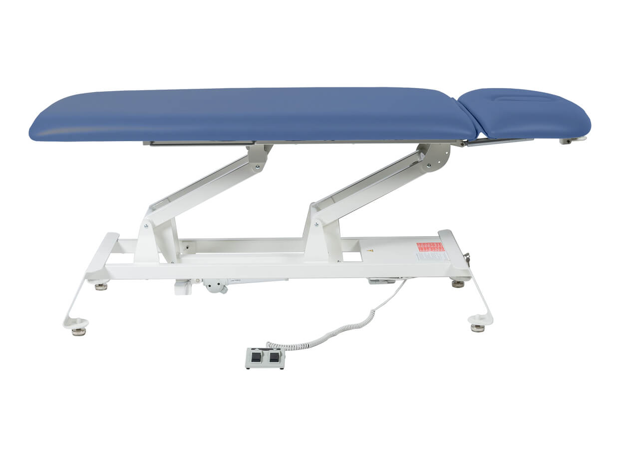 Modern elektromos kétrészes ágy állítható fejtámlával, alkalmas masszázsra, gyógytornára, kozmetikára vagy vizsgáló ágynak.