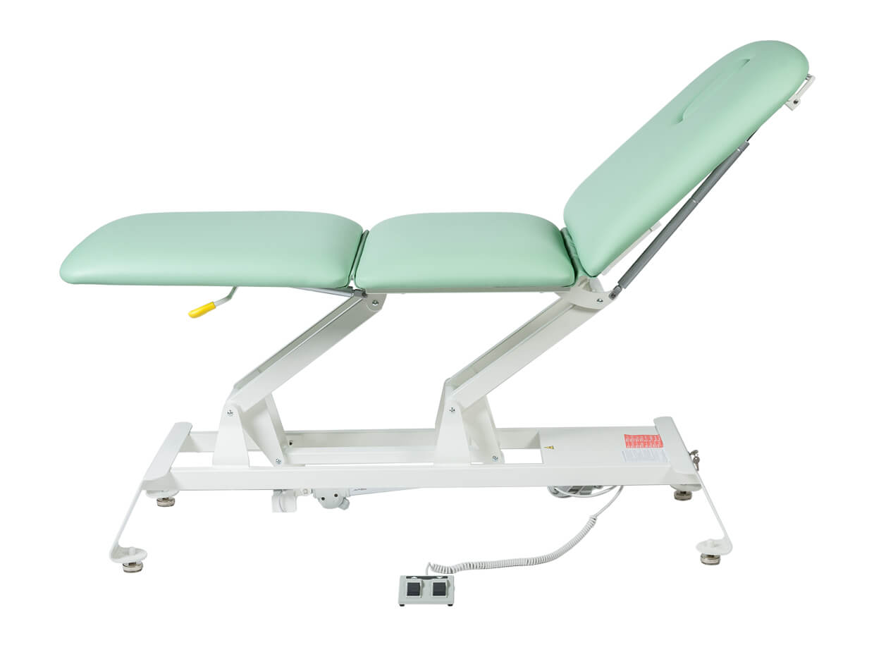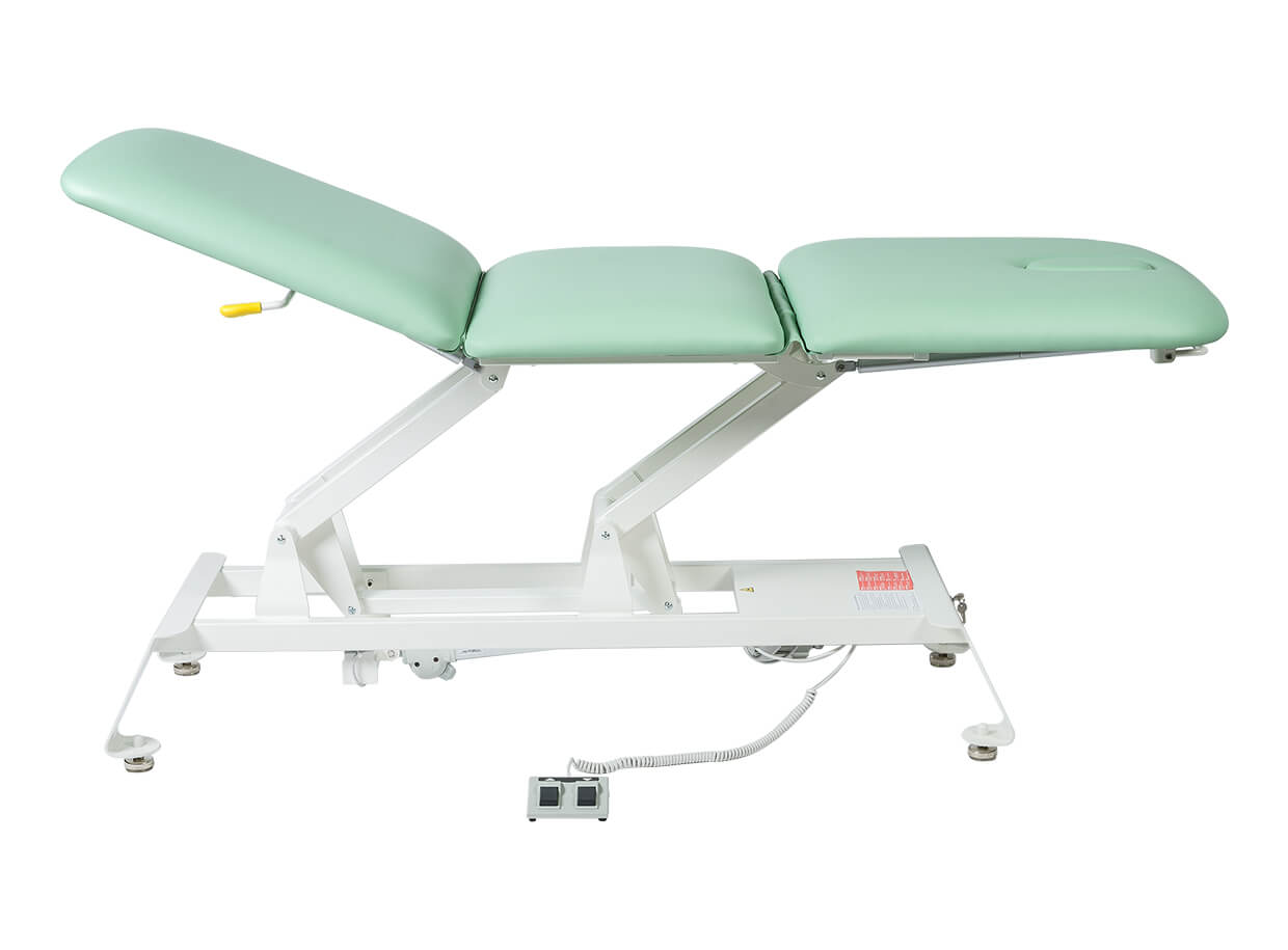 Modern elektromos háromrészes ágy állítható fej- és lábtámlával. Változatosságának köszönhetően nem csak masszázsra, hanem gyógytornára, szépségszalonba vagy orvosi rendelő vizsgáló ágyaként is alkalmas.