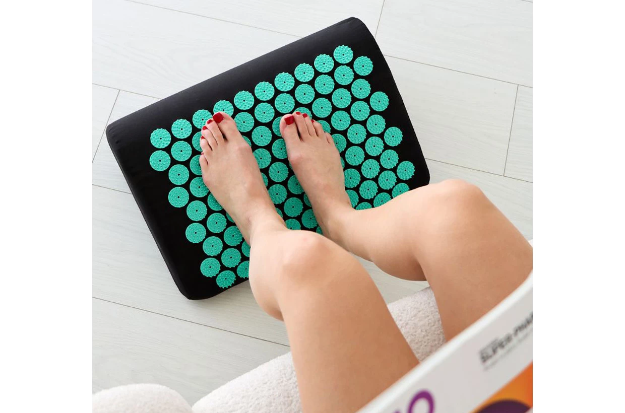 A tüskés rozetták a szőnyegen eloszlanak, biztosítva az egyenletes nyomást és számos akupresszúrás pont stimulálását. Ez hozzájárul a fájdalom csökkentéséhez, az általános ellazuláshoz, a jobb vérkeringéshez és a fáradtság csökkentéséhez. A kényelemérzetet az alján található csúszásgátló elemek biztosítják, amelyek megakadályozzák a háttámla padlón való elcsúszását. A háttámla ergonomikus alakja és dőlésszöge szintén előnyt jelent.
