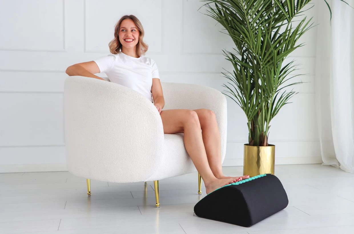 Az ergonomikus lábtartó masszázstüskékkel a lábfej, a talpak akupresszúrás masszázsára szolgál, valamint a comb és a vádli masszírozására és a hát alsó részének ellazítására is használható. Használata alkalmas irodai dolgozók számára, akik sokáig ülnek számítógép előtt, de azoknak is, akik egész nap állnak a munkahelyükön és regenerálódni szeretnének. Ideális otthoni masszázshoz pihenés és relaxáció közben, vagy akár utazás közben is.