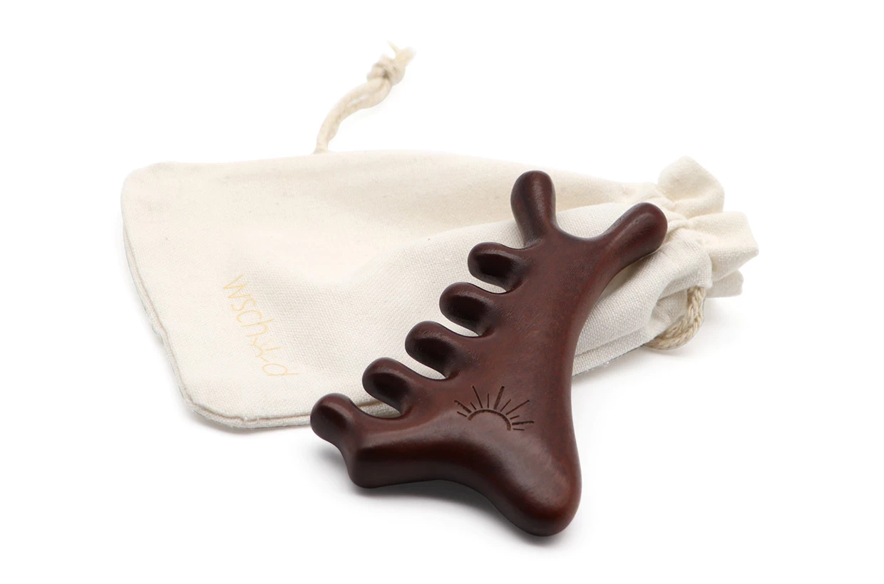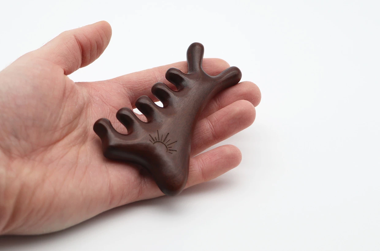 Szantálfából készült kaparó gua sha masszázshoz. Ez a hagyományos kínai orvoslás egyik formája, amely a bőr kemény eszközökkel történő kaparását jelenti, ami segít ellazítani a feszült izmokat, a feszes fasciát, fokozni a véráramlást és felmelegíteni a bőrt, serkenti a nyirokrendszert, eltávolítja a vérrögöket vagy duzzanatokat, valamint stimulálja az akupresszúrás pontokat és az immunrendszert. Ezenkívül a gua sha masszázs ideális krónikus fáradtság és migrén esetén is.