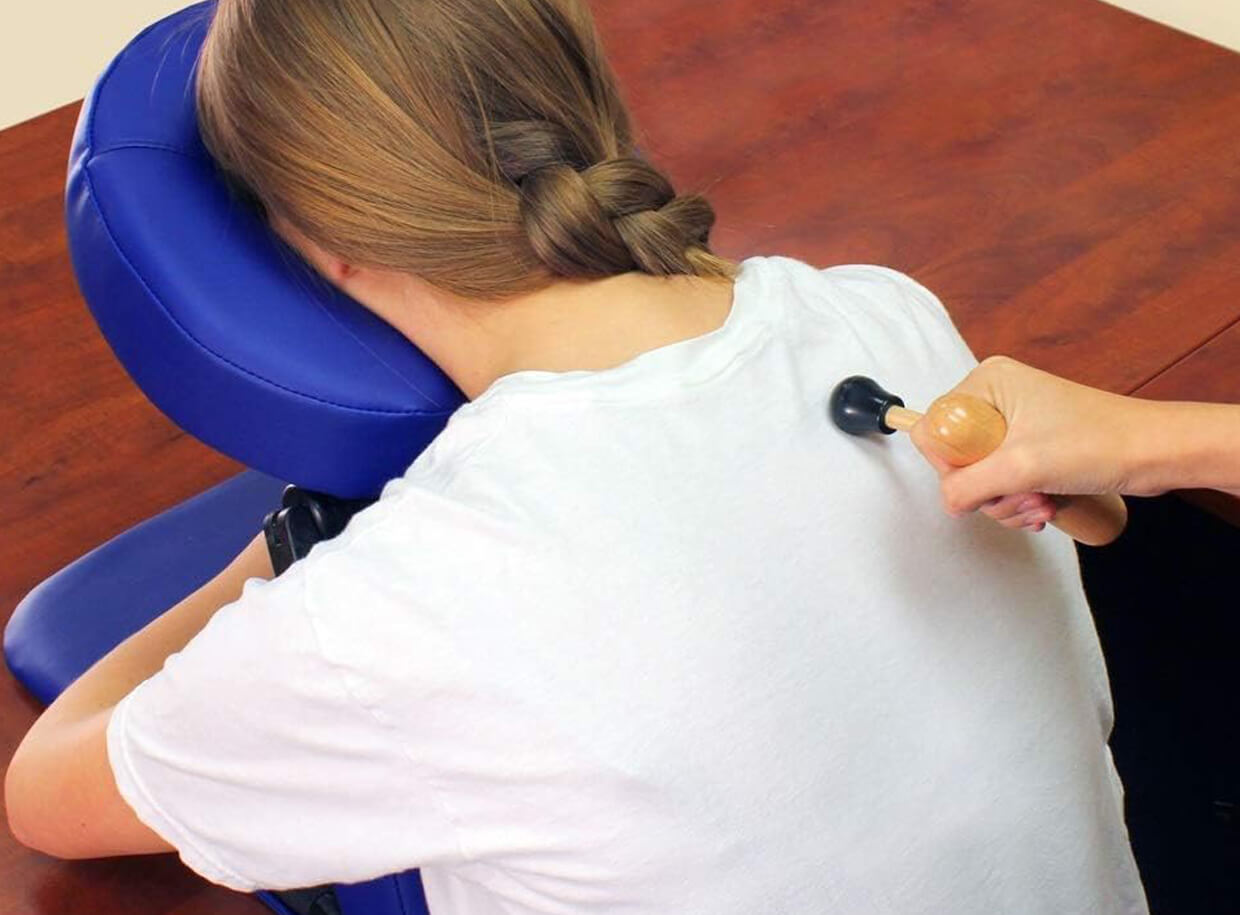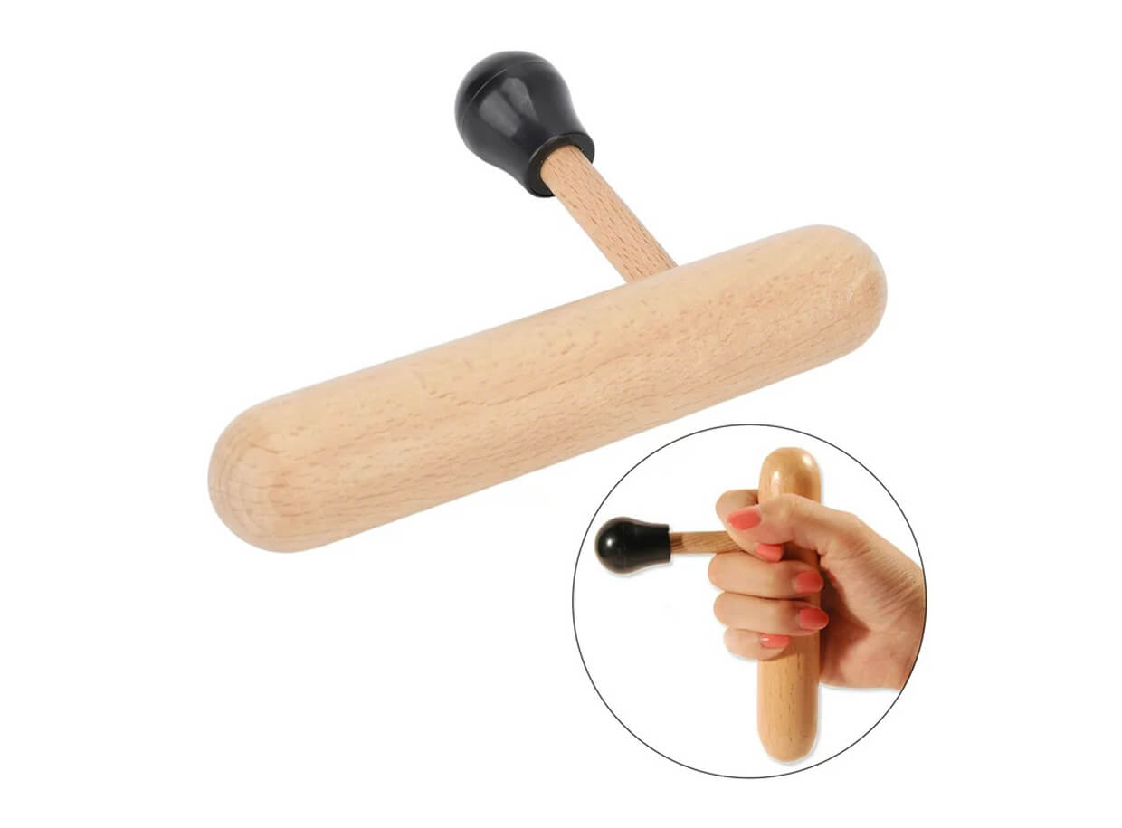 Trigger pontok kezelésére és pontszerű mélymasszázsra tervezett, műanyag hegyű bükkfából készült masszírozó segédeszköz, amely kíméli a masszőr hüvelykujját és segít megelőzni a fáradtság okozta sérüléseket.