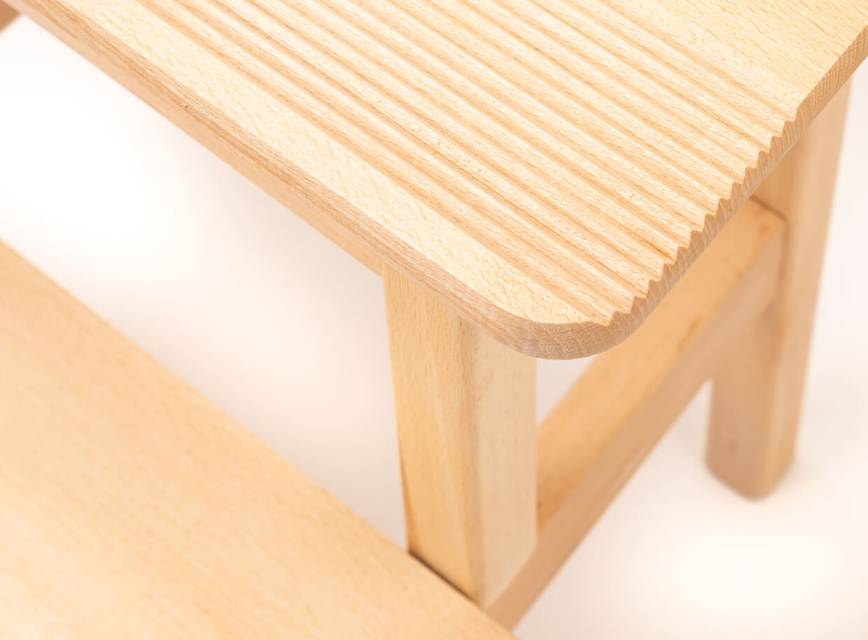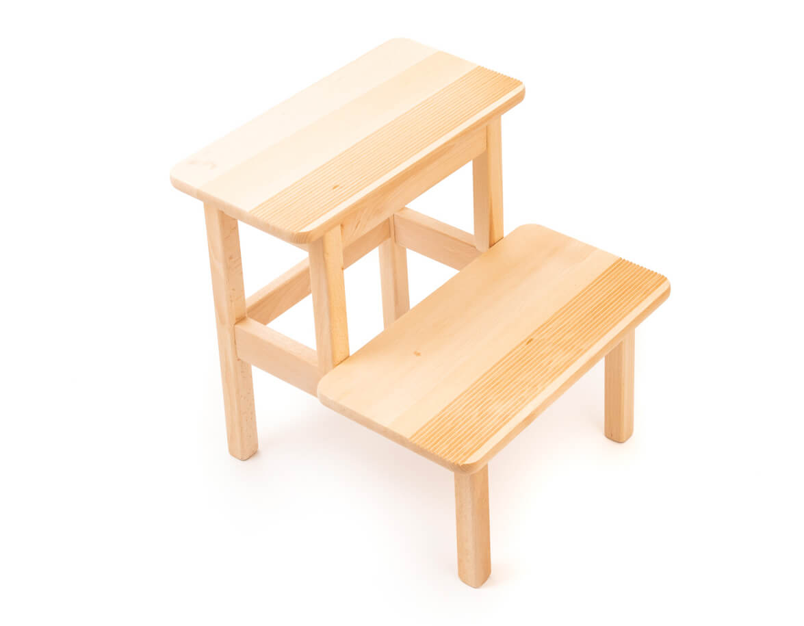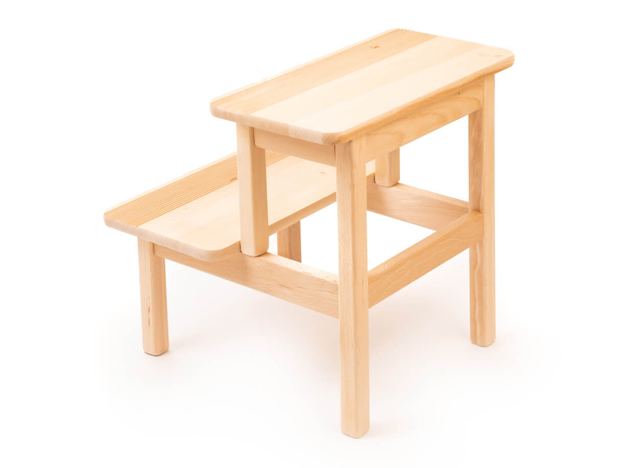 A fából készült kétlépcsős létra masszírozó létesítményekbe alkalmas masszázságyak kiegészítőjeként.