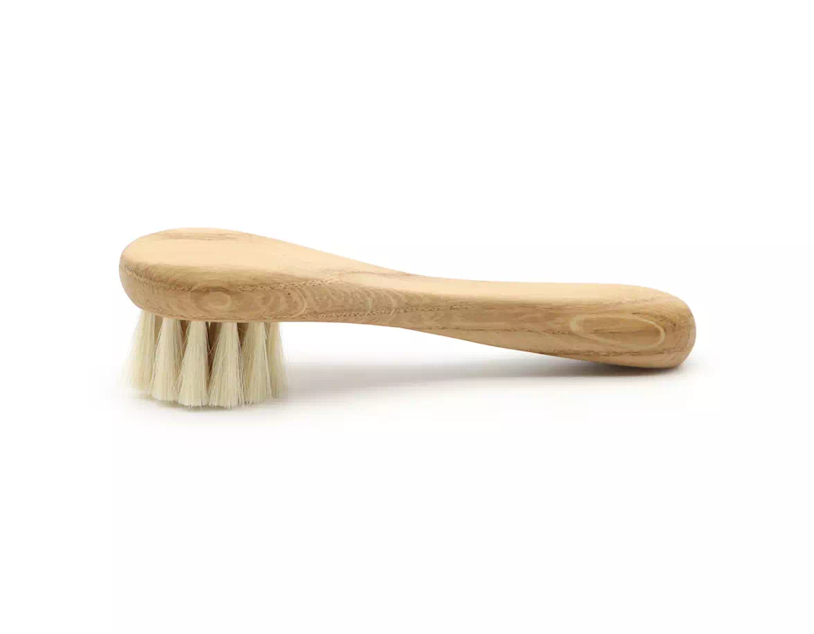 Speciális kefe puha természetes kecskeszőr sörtékkel a száraz bőr masszázsához. Finom gyermekhaj fésülésére is alkalmas.
