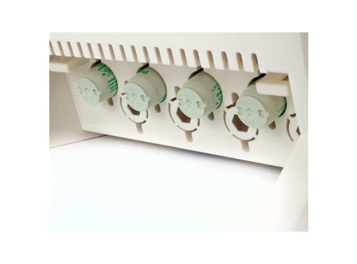 Az izzó csövek panorámaképesek az arc és a dekoltázs egyenletes besugárzása érdekében, beépített fényvisszaverő képernyővel rendelkeznek, amely megkönnyíti a barnulási folyamatot.