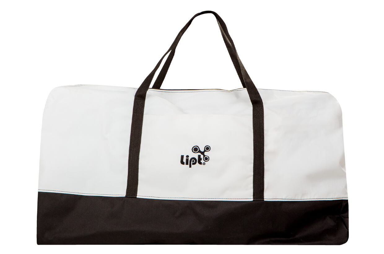 A táska cipzárral van ellátva, és két erős hevederrel van felszerelve, amelyek lehetővé teszik a masszázsszék kényelmes és biztonságos hordozását. A táska elején cipzáras zseb, felette egy kisebb heveder, amely megkönnyíti a csomagolt masszázsszék kezelését.