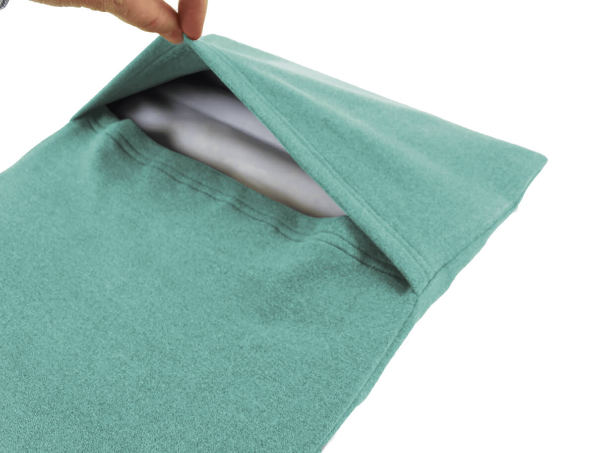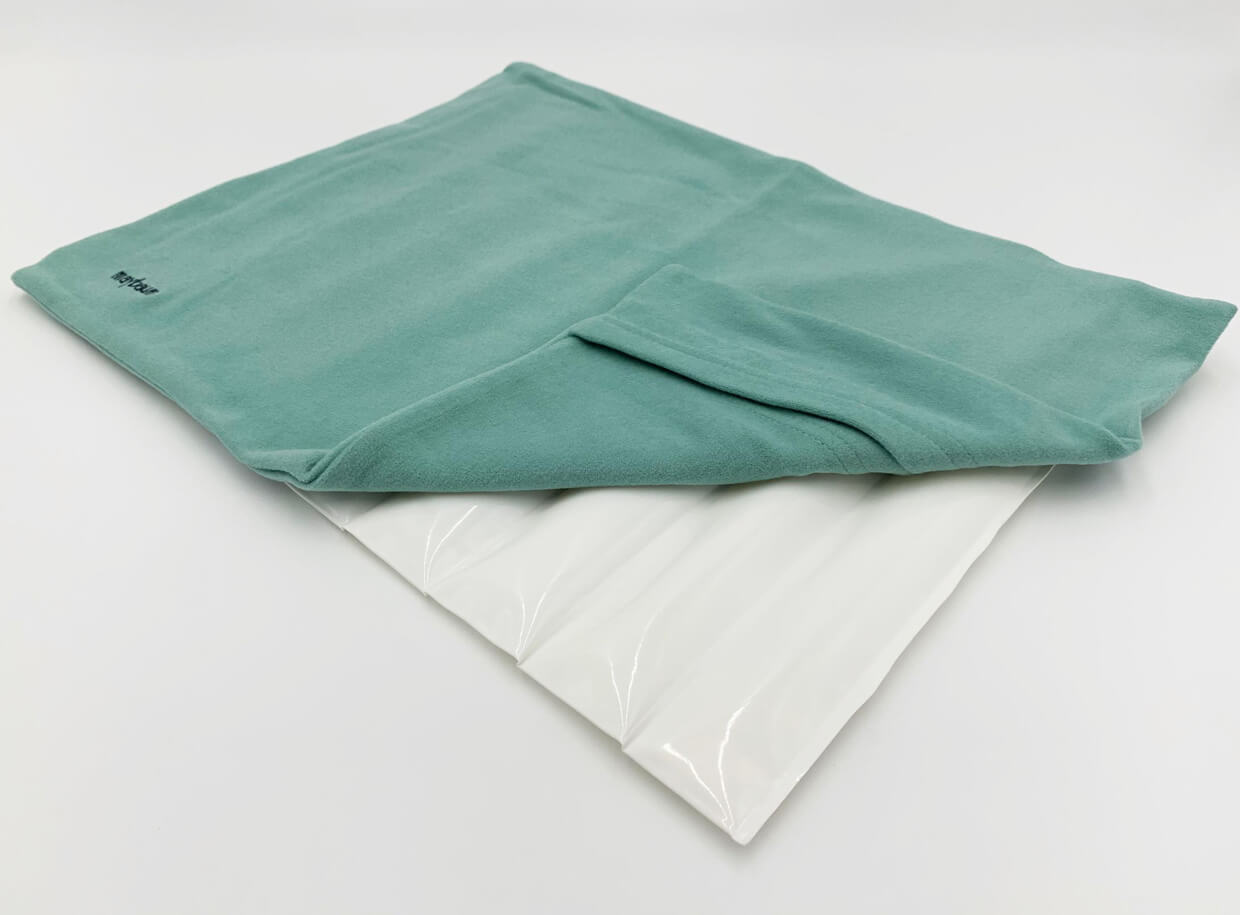 Tökéletesen alkalmazkodik bármely testrészhez, szükség szerint ráhelyezheti, alá, vagy közvetlenül beburkolhatja vele a túlmelegedett és fájdalmas helyeket. A "Second Skin" hűtő alátét textil huzata sima anyagból készült, amely kellemes és kényelmes. Mosógépben mosható.