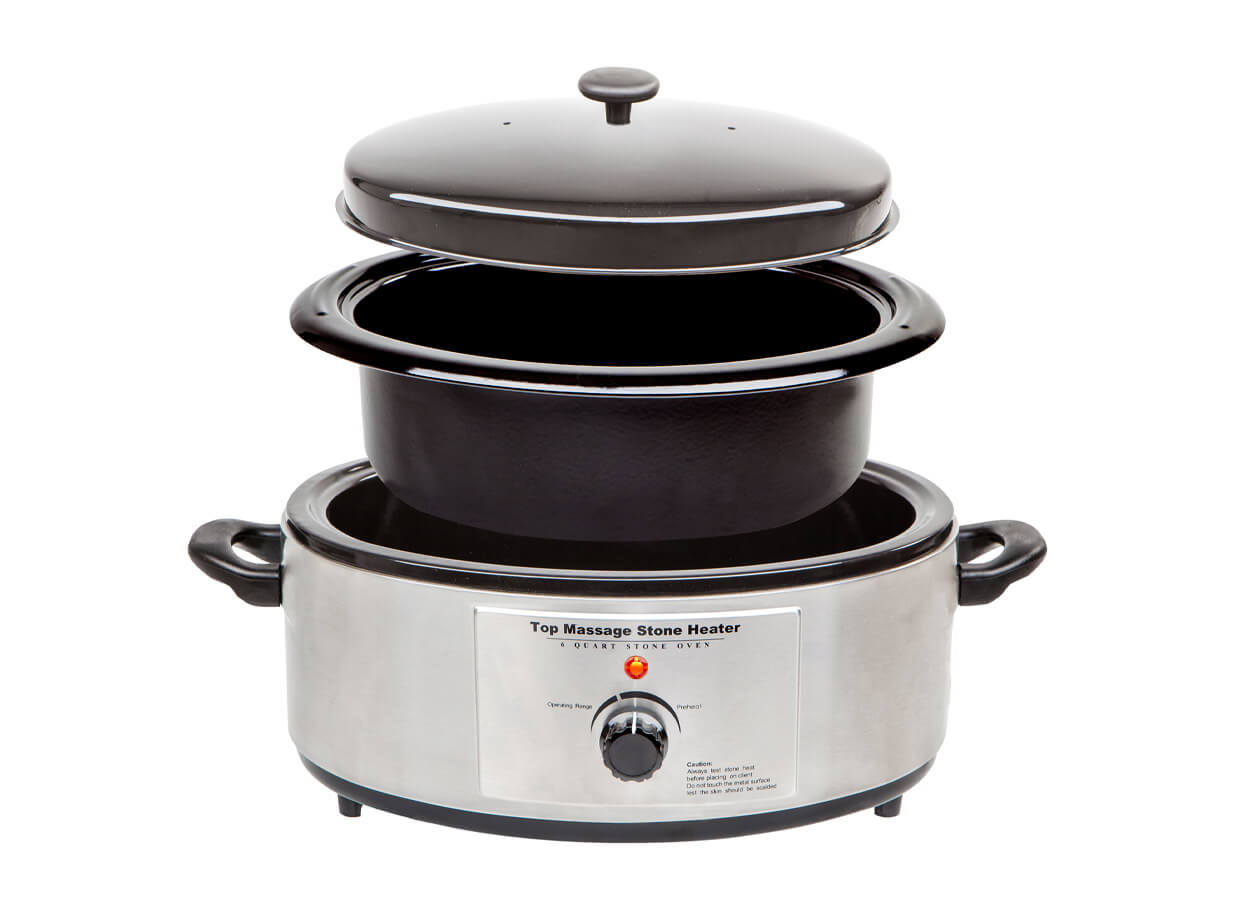 A fűtőelem három részből áll. Hőmérséklet szabályozóval és fényjelzővel ellátott melegítő berendezés, belső edény a kövek melegítésére, fém fedél. A készülékbe helyezzük a belső mosható edényt, amelynek az aljára összehajtott fehér törölközőt helyezünk. Erre rakjuk a lávaköveket és annyi vízzel töltjük fel, hogy a kövek elmerüljenek, azonban legfeljebb az edény oldalán található max jelzésig.