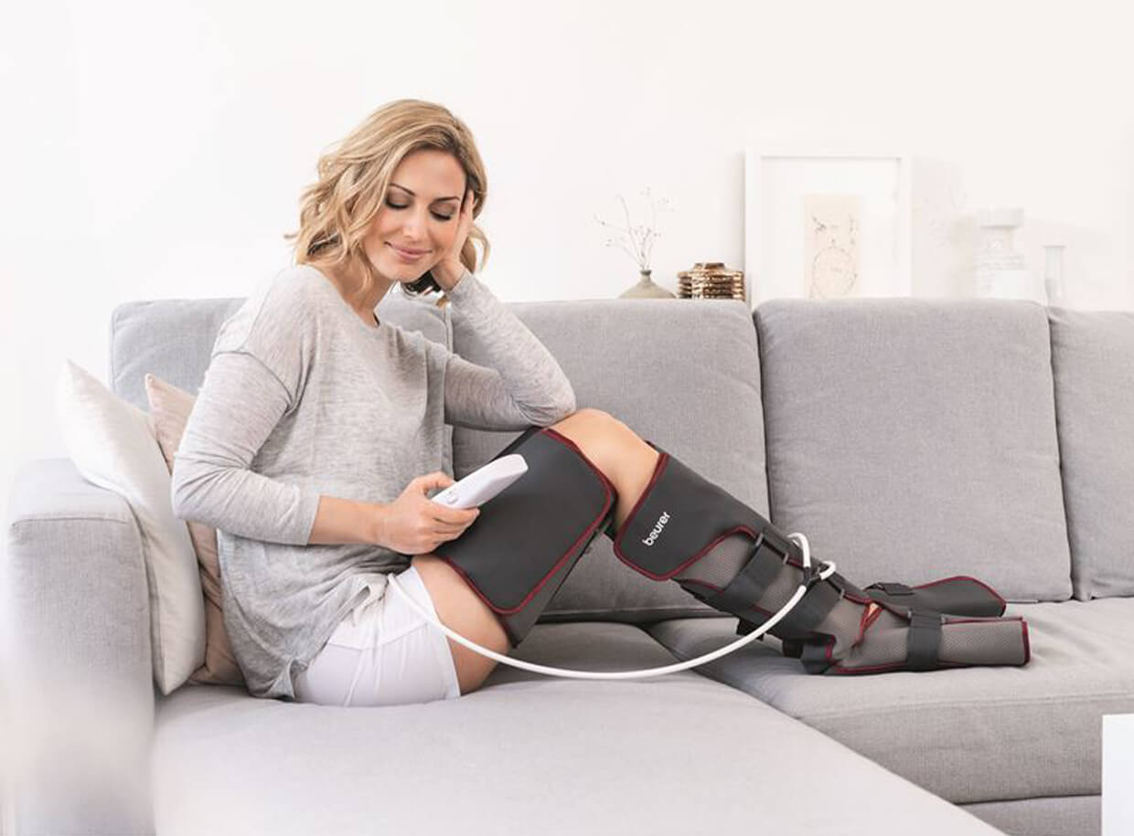 A készülék beépített légpárnákkal rendelkezik, amelyek felváltva felfújódnak és leeresztenek, és pihentető nyomásmasszázst biztosítanak a lábaknak. Hatékonyan serkenti a vérkeringést, melynek köszönhetően a lábak jól ellátottak vérrel, megszünteti a fájdalmat és az izomfeszülést, valamint segít megelőzni a visszér- és pókvénák kialakulását. A mandzsetta mérete könnyen állítható tépőzárral.