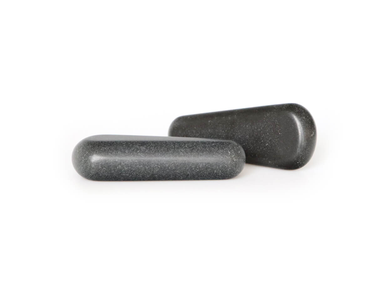 Masszázs lávakövek ék alakban, keskeny véggel a trigger pontok masszírozására. A kövek kézzel készítettek természetes bazaltból, lávakőből, amely gyorsan felmelegszik és hosszú ideig megtartja a hőt. Simák és alaposan csizsoltak, így könnyen siklanak a bőrön.