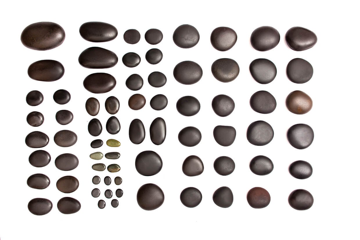 Természetes módon csiszolt bazalt kövek a dél amerikai partokon kézzel összegyűjtve. A vulkáni eredet biztosítja a lávakövek magas hőmegtartó képességét. Az egyes köveket eredetileg az óceán formálta a színárnylat ezért eltérő lehet az ásványtartalomtól függően.