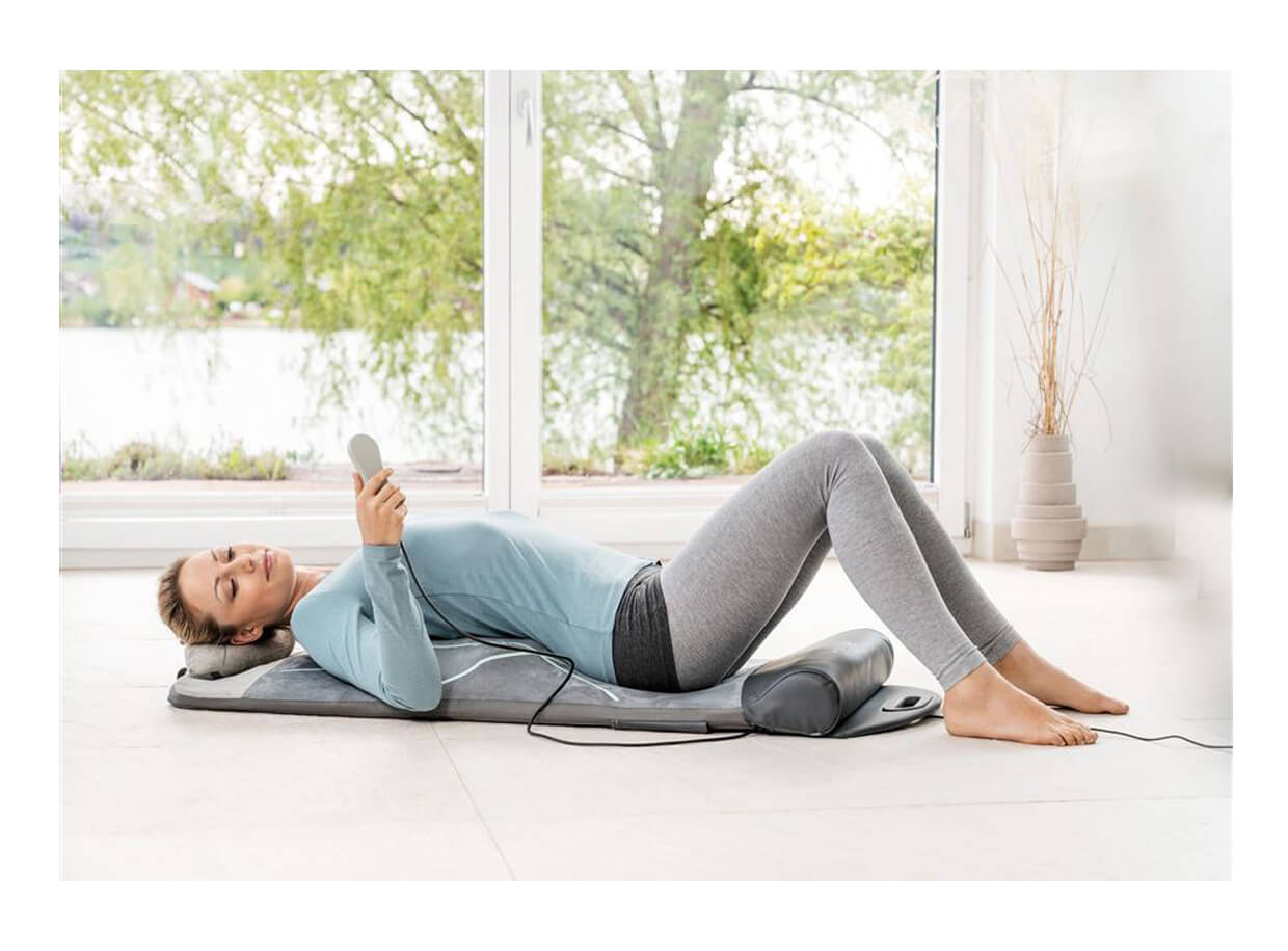 A masszázs alátét könnyen kezelhető, a vezérlőkészülék kéznél van.