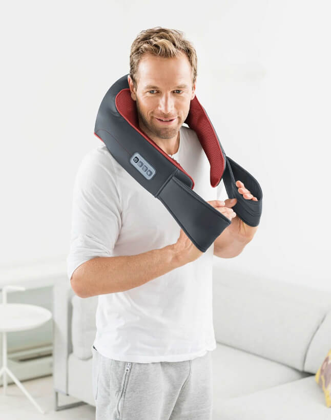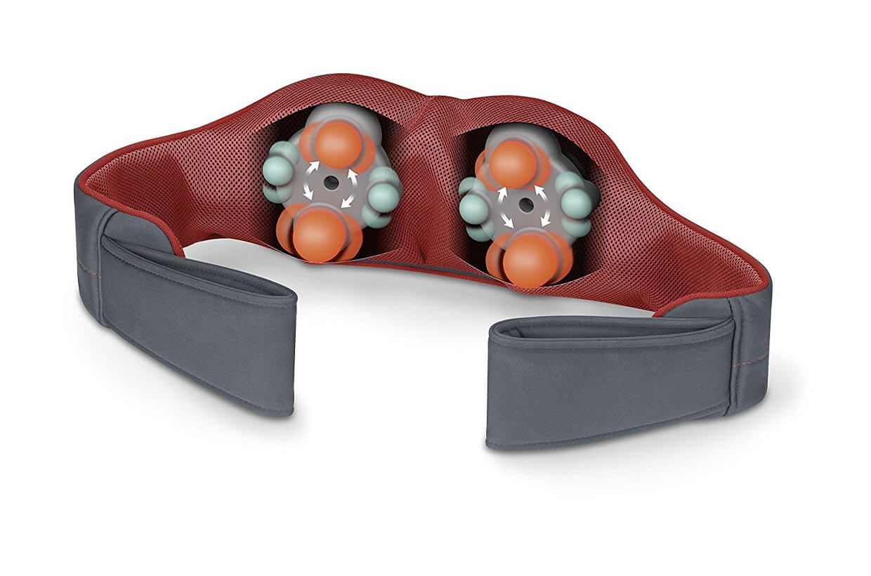 A Beurer német márkanév Beurer MG 151 masszázsgépe kényelmesen alkalmazható a test körül. Két fogantyúval rendelkezik, amelyek bizonyos pozíciókban hasznosak lehetnek a fájdalmas területek nyomására. Összesen nyolc 3D-s masszázsfej van beszerelve, párban forogva és szükség szerint jobbra vagy balra futva. Négyük kiegészítő felszereléssel rendelkezik hő- és fényfunkcióval, amelyek külön-külön bekapcsolhatók. A masszázserő három fokozatban állítható be. Mindezeket a funkciókat egy kényelmes kezelőpanelen keresztül lehet kezelni az egyik fogantyú közelében.