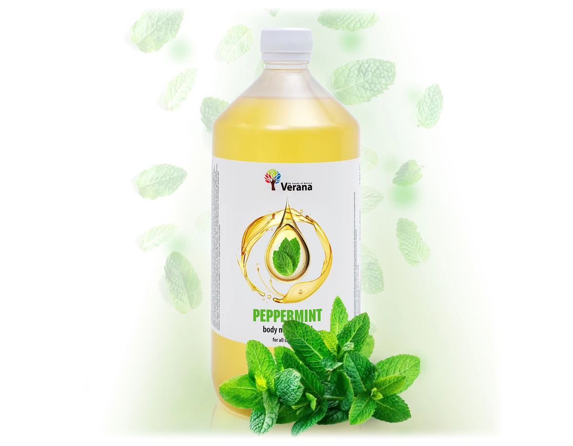 Menta testmasszázs olaj regeneráló masszázshoz és öregedésgátló eljárásokhoz. Kellemes, frissítő illata van, könnyen eloszlik és beszívódik a bőrbe.