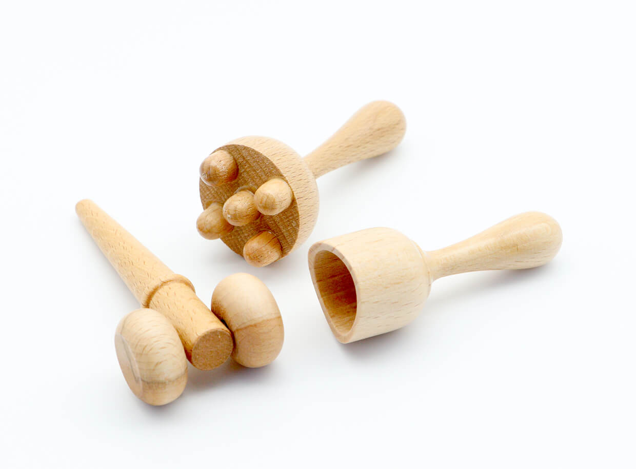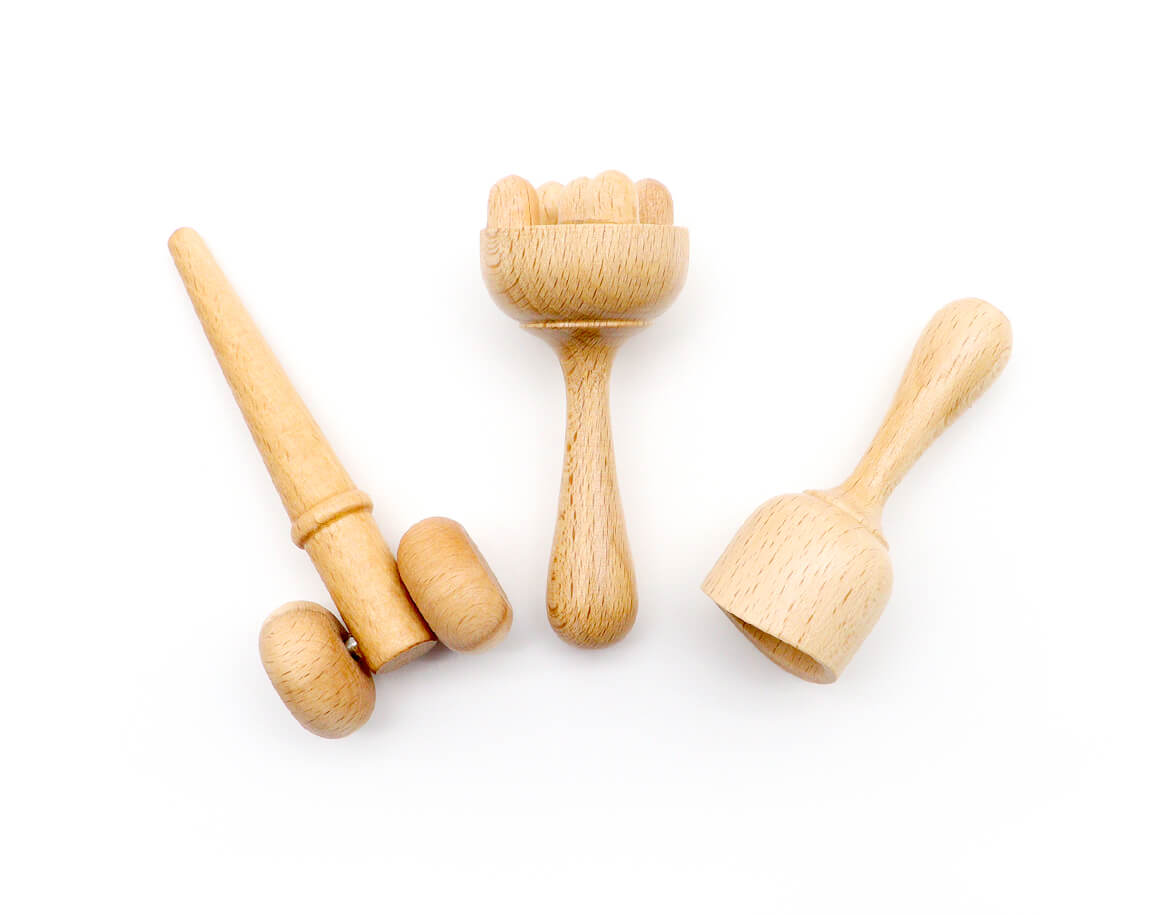 Kicsi és könnyű készlet 3 lakkozott bükkfa eszköz az arc kíméletes és alapos makeroterápiájához. A készlet könnyű és kis helyet foglal, bárhová magával viheti. A készlet tartalma: