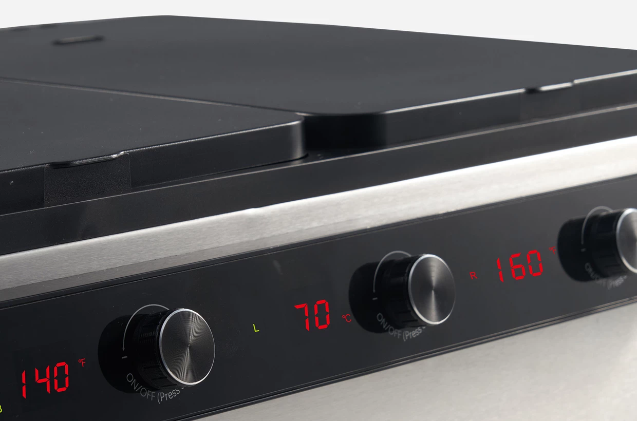 A melegítésszabályozók mindegyike fel van szerelve a melegítési hőmérséklet digitális kijelzőjével, valamint fényjelzővel, amely egyszerűen jelzi a melegítés állapotát: