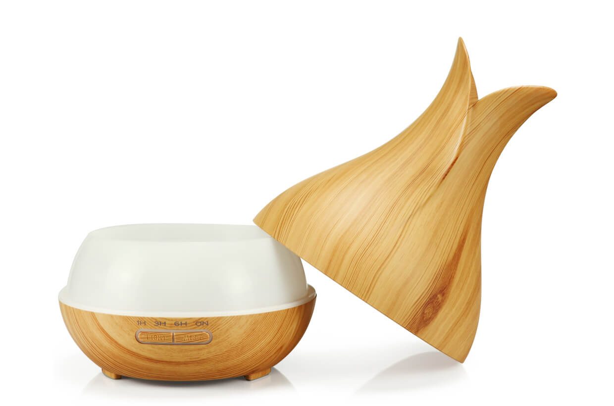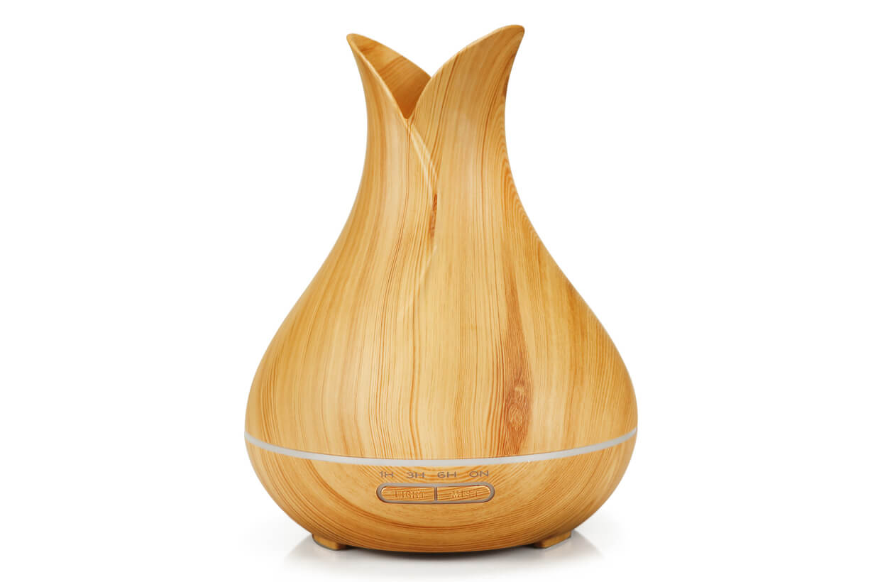 Ultrahangos párologtató. Extra csendes (35dB alatt). Praktikus és elegáns lakberendezési kellék, halvány barnafa színben.