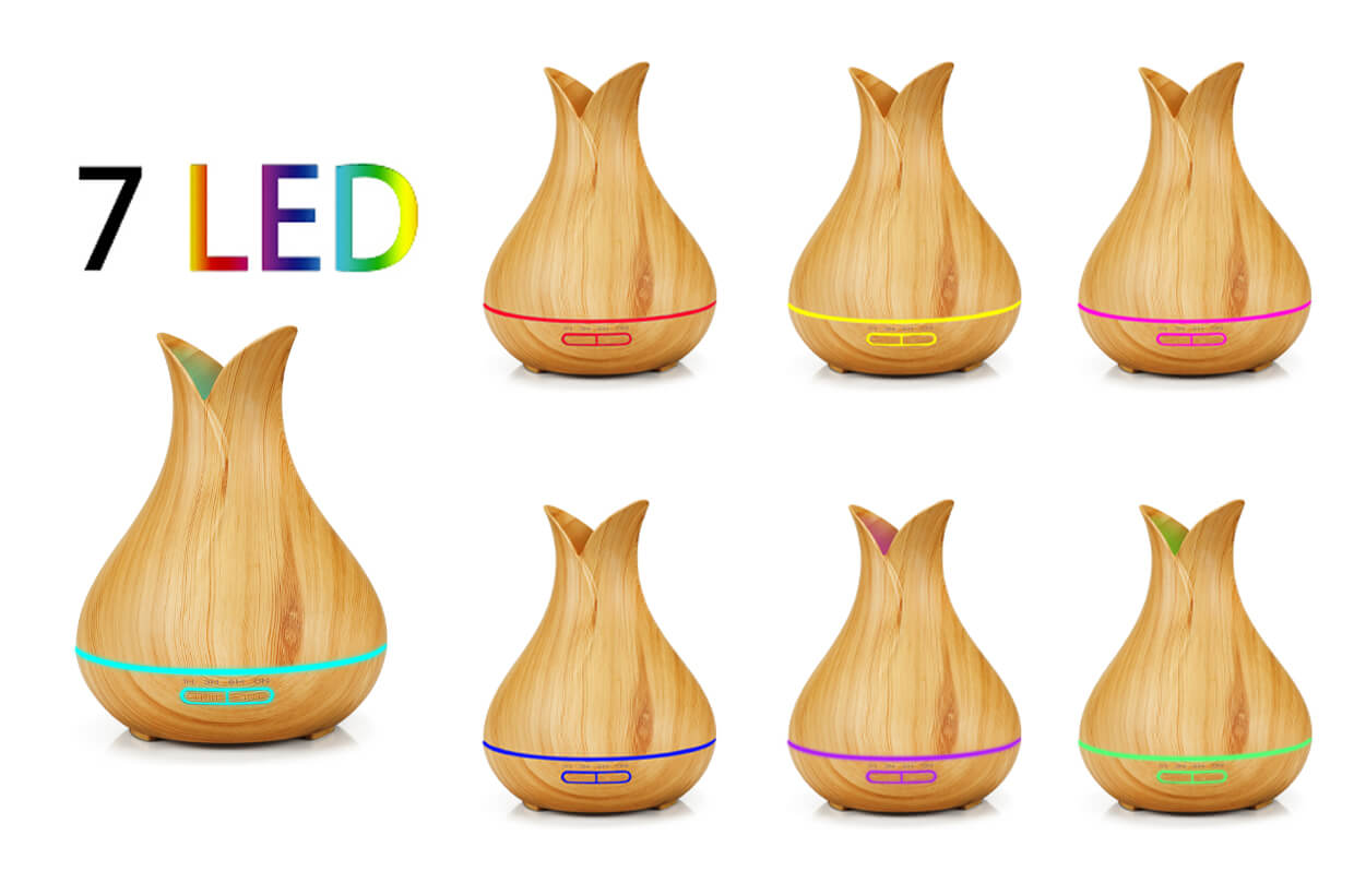 Felhasználás: Csatlakoztassa a tápellátást. A mellékelt adagolópohár segítségével töltse fel desztillált vízzel. Adhat hozzá 4-5 csepp illóolajat is. Kapcsolja be a berendezést és a gombok segítségével állítsa be a pára időzítőt és a LED világítás színét.