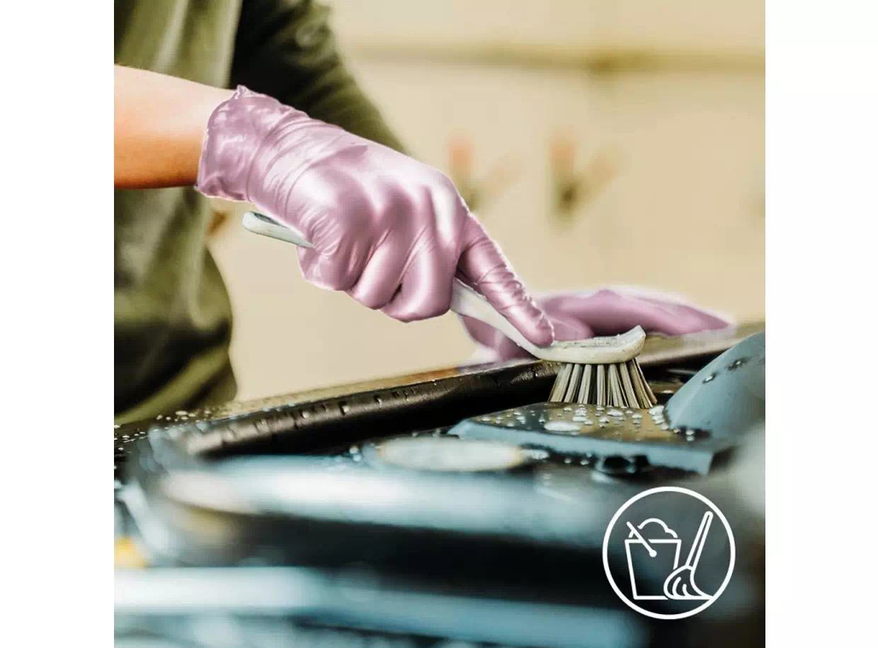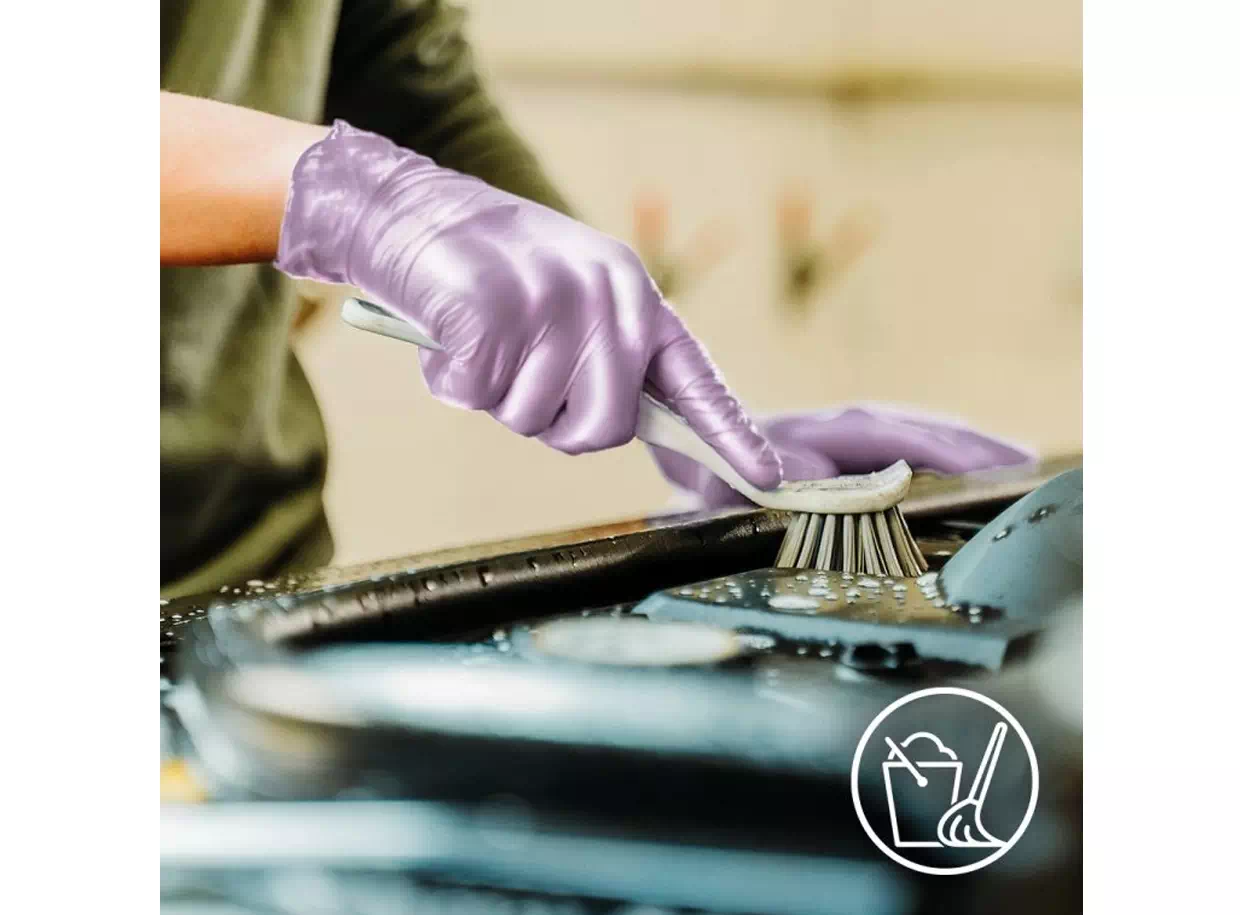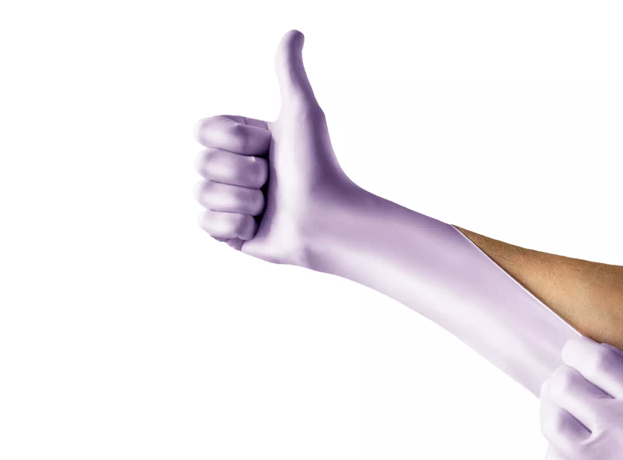 Az erős és ellenálló egyszer használatos kesztyűk érdesített ujjhegyekkel rendelkeznek a jobb fogás érdekében. Rugalmas és kényelmes viselet, mert alkalmazkodnak a kéz formájához. A belső felületkezelés biztosítja a könnyű felhúzást.