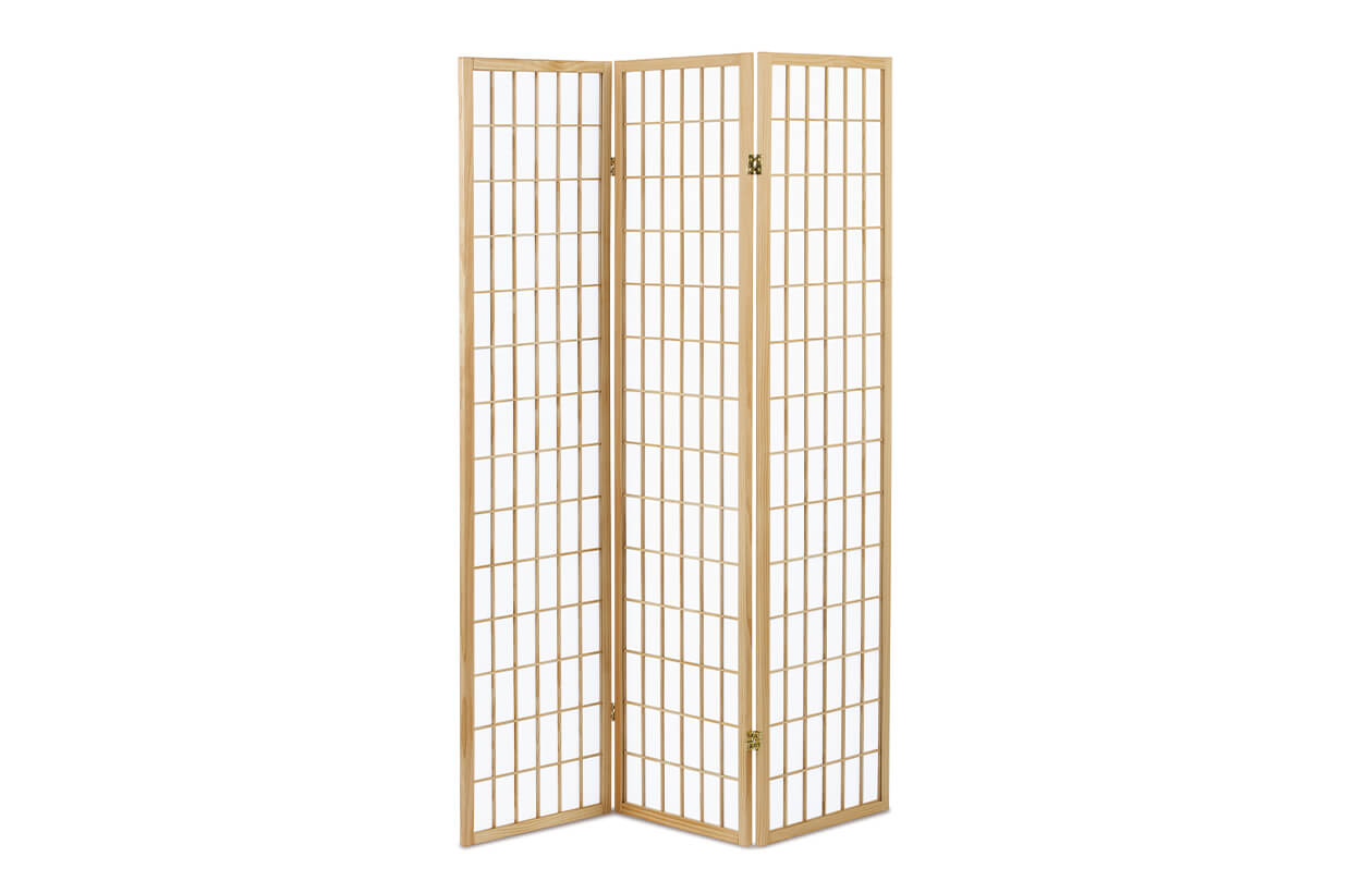 Modern 3 részes paraván, fa szerkezettel, tömör lucfenyőből natúr színben.