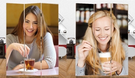 3 részes paraván Coffe nyomtatott fényképpel, érdekes kiegészítővé válhat a munkahelyén.