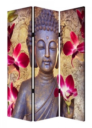 Háromrészes paraván a Buddhafényképnyomtatásával, érdekes kiegészítő lehet a munkahelyére.