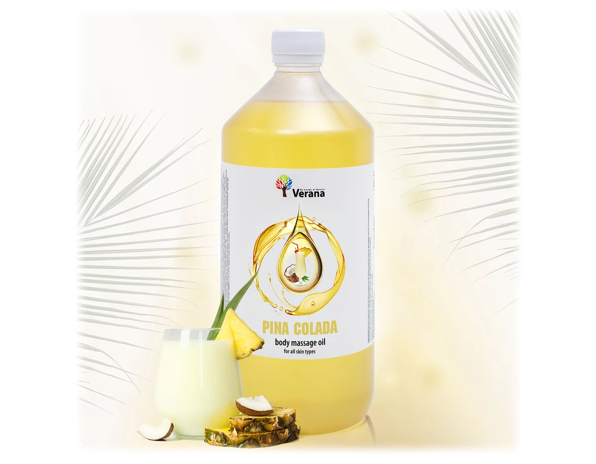 Masszázsolaj az egzotikus Piňa Colada koktél illatával az egész test regeneráló és fiatalító masszázsához.