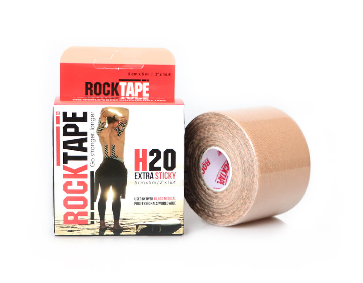 A RockTape H2O tejp olyan kineziológiai tapasz, amelyet kifejezetten vízi sportok közbeni viselésre terveztek. A ragasztós oldal víz- és izzadságálló ragasztót tartalmaz, melynek köszönhetően akár 10 napig is kitart a bőrön.