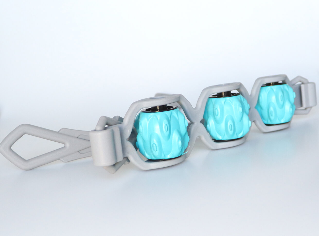 A masszázsgörgők speciálisan mélymasszázshoz és triggerpontos masszázshoz vannak kialakítva. A masszírozó így hatékonyan ellazítja a merev izmokat, serkenti a vérkeringést és javítja a mobilitást. Sportolás vagy megerőltető fizikai aktivitás okozta sérülések megelőzésére is használható.