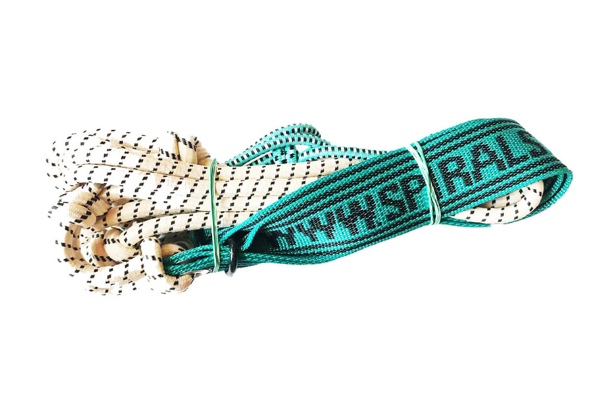 A kényelmes edzés érdekében a kötelet egy hosszú hurokkal látták el a végén l, hogy a kezét vagy lábát rögzíteni tudja. A hurkokon van egy rugalmas szalag, amelyet a felhasználó le tudja húzni a hevedert úgy, hogy kényelmesen tartsa a csuklóján a bokán.