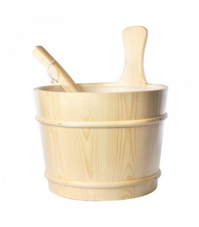 A praktikus vödör fából készült kanállal, minden szaunához elengedhetetlen kiegészítő. Az esszencia vagy a kivonat vízzel történő keverésére valamint a szaunaseprű áztatására szolgál.