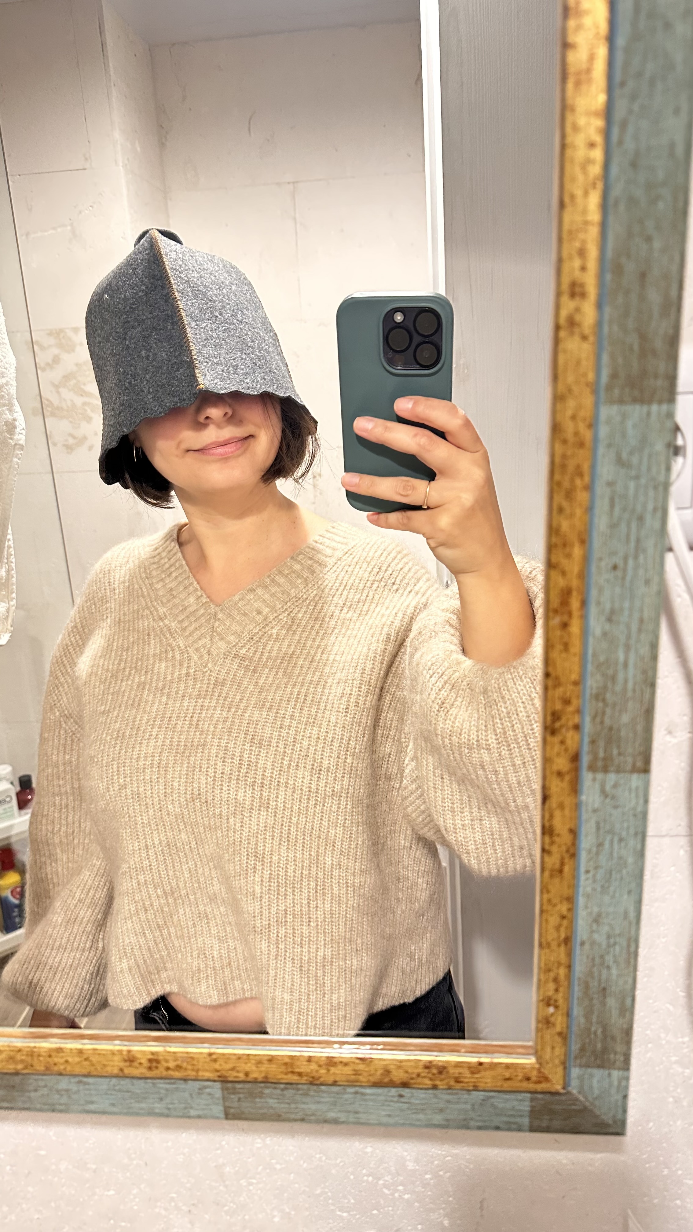 Szürke szauna kalap gyapjúból