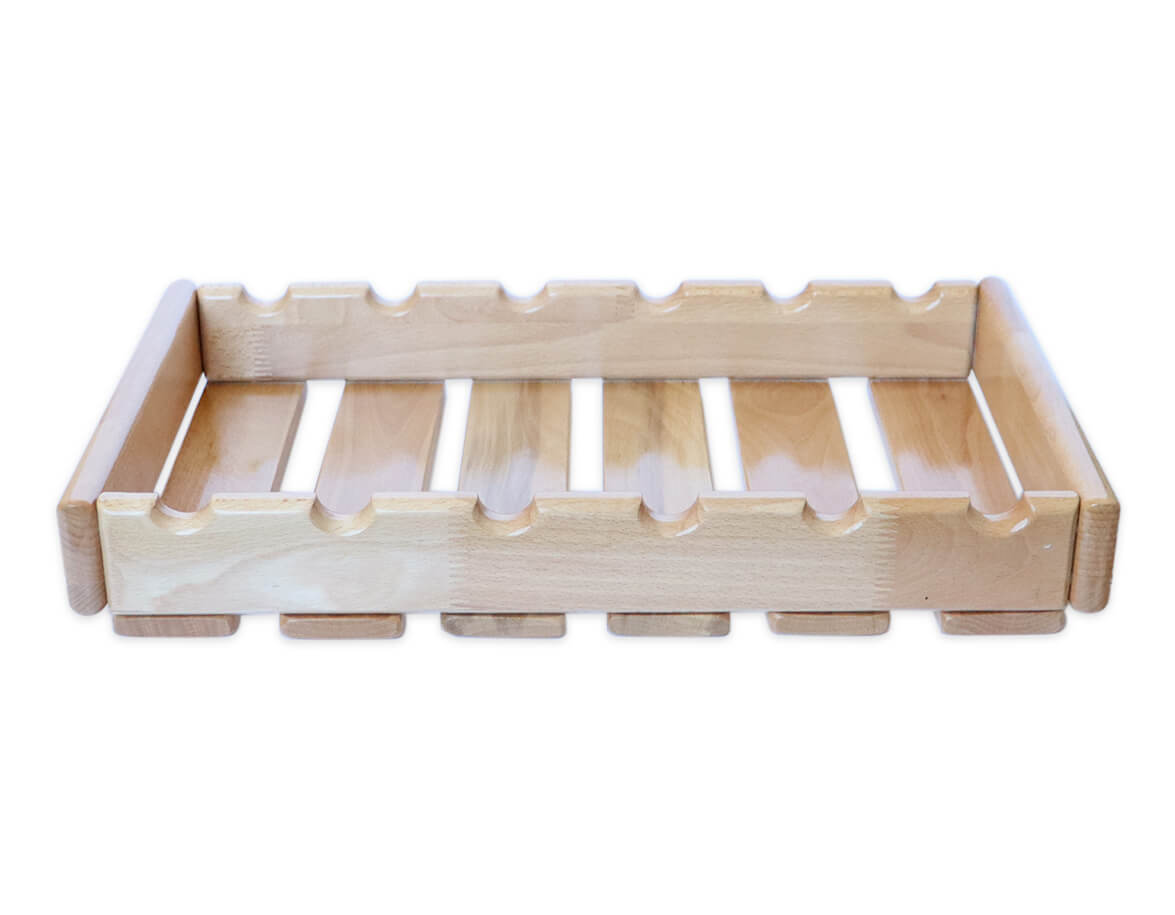 Lakkozott bükkfa doboz. A doboz 6 bevágással rendelkezik, amelyekbe a görgők fogantyúi illeszkednek, vagy a doboz egy részét használhatja tárolóhelyként más eszközök és maderoterápiás segédeszközök tárolására.