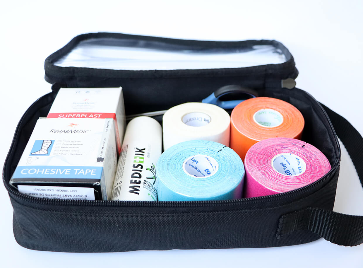 Minden masszőr, gyógytornász vagy szalag felhasználó értékelni fogja a szalagokhoz alkalmas táskát. A táska praktikus segédeszköz bármilyen típusú és méretű szalag tárolására, esetleg olyan kiegészítőkkel együtt, mint az olló, tisztítóhab vagy szalageltávolító.