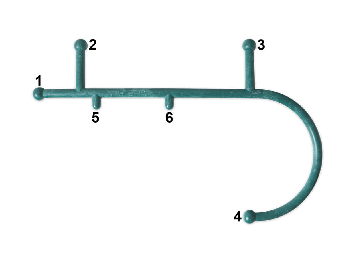 Két vékonyabb nyúlvány (5. és 6. pont) is alkalmas reflexmasszázsra és pihentető talpmasszázsra. A masszírozó oldalán és végén fogantyúk találhatók (1., 2. és 3. pont), amelyek segítségével erősen megfoghatja a segédeszközt, és megfelelő nyomást gyakorolhat a masszázs során anélkül, hogy a masszírozó kicsússzon a kezéből.