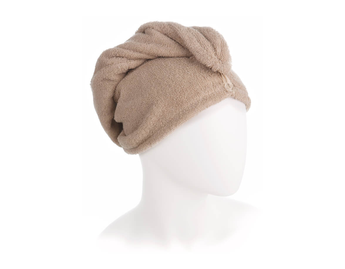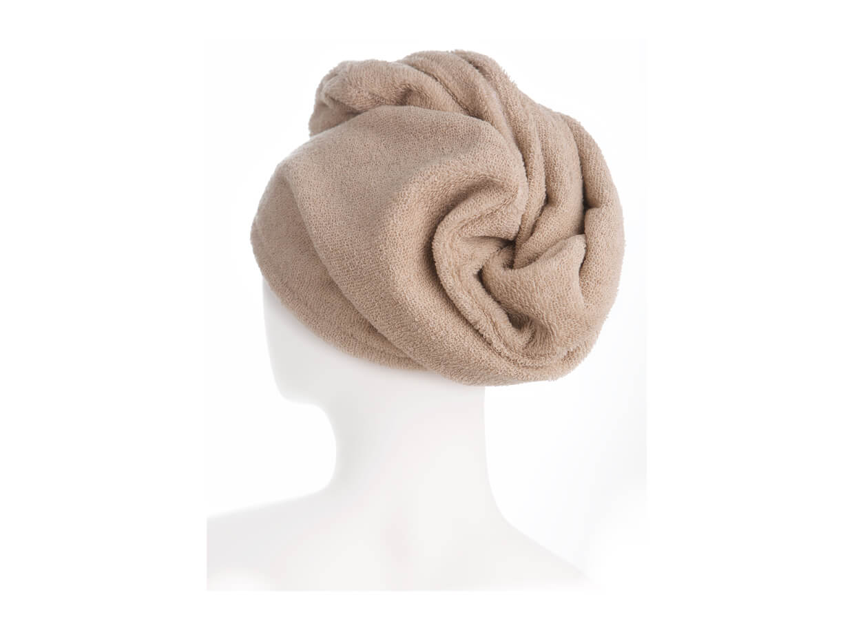 A turbán univerzális a semleges természetes színnek köszönhetően, ezért hölgyek és férfiak is használhatják, fürdés után vagy mint a fej hő elleni védelmére szaunázás közben.