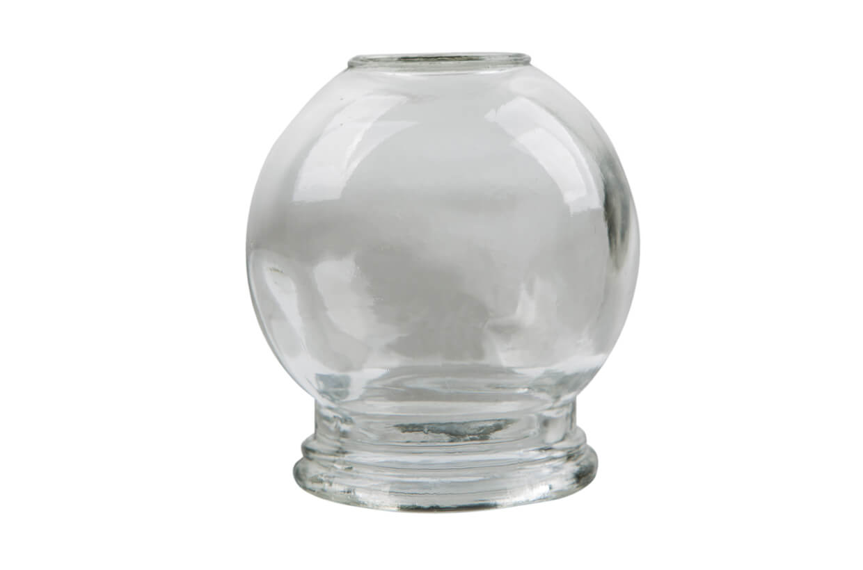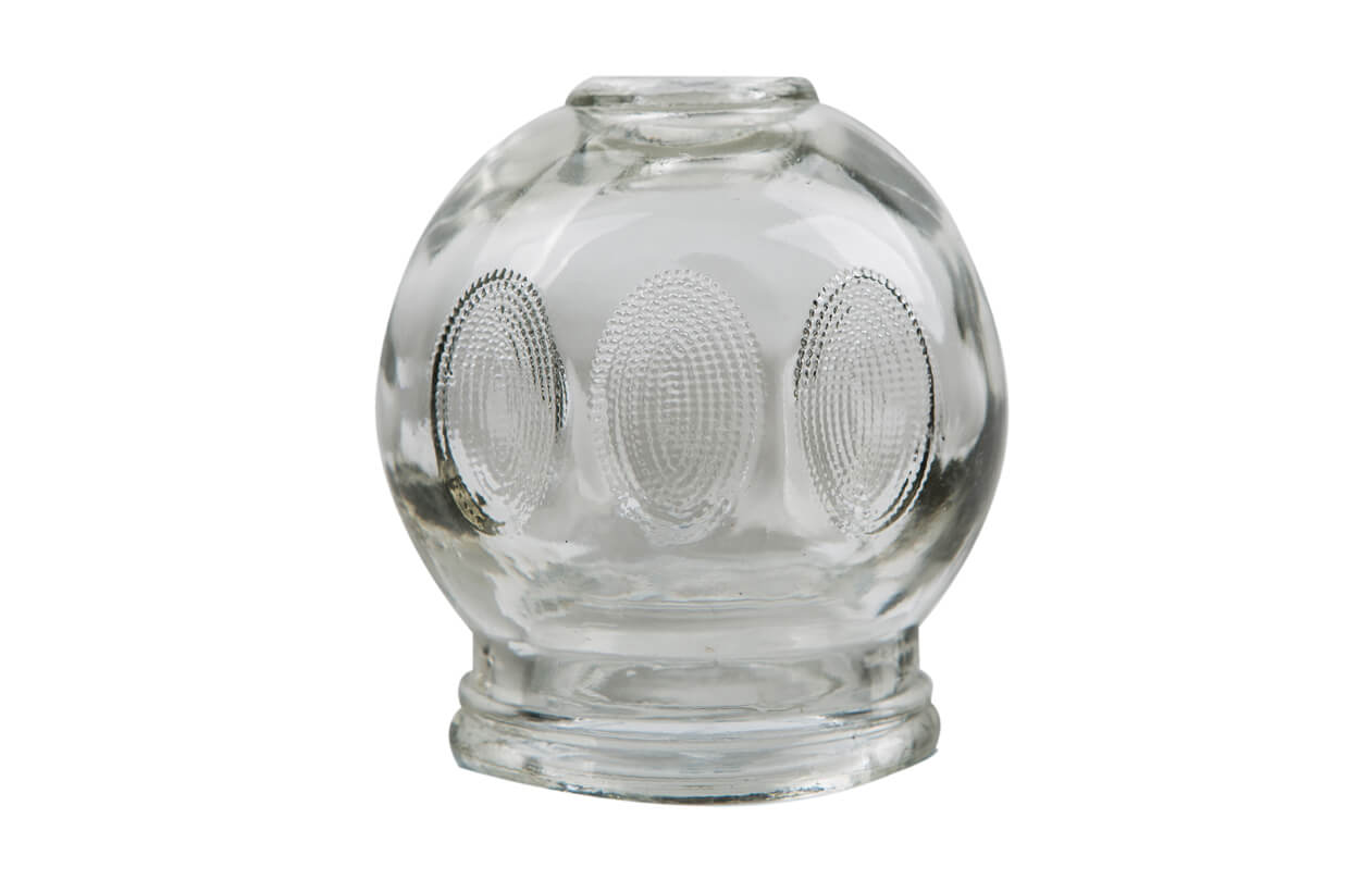 Klasszikus masszív üveg köpölyöző, köpölyözésre. Vastag falú átlátszó üvegből van legyártva. Az előnye, hogy a tűzzel való kezelésnél nagyon hamar felmelegszik.