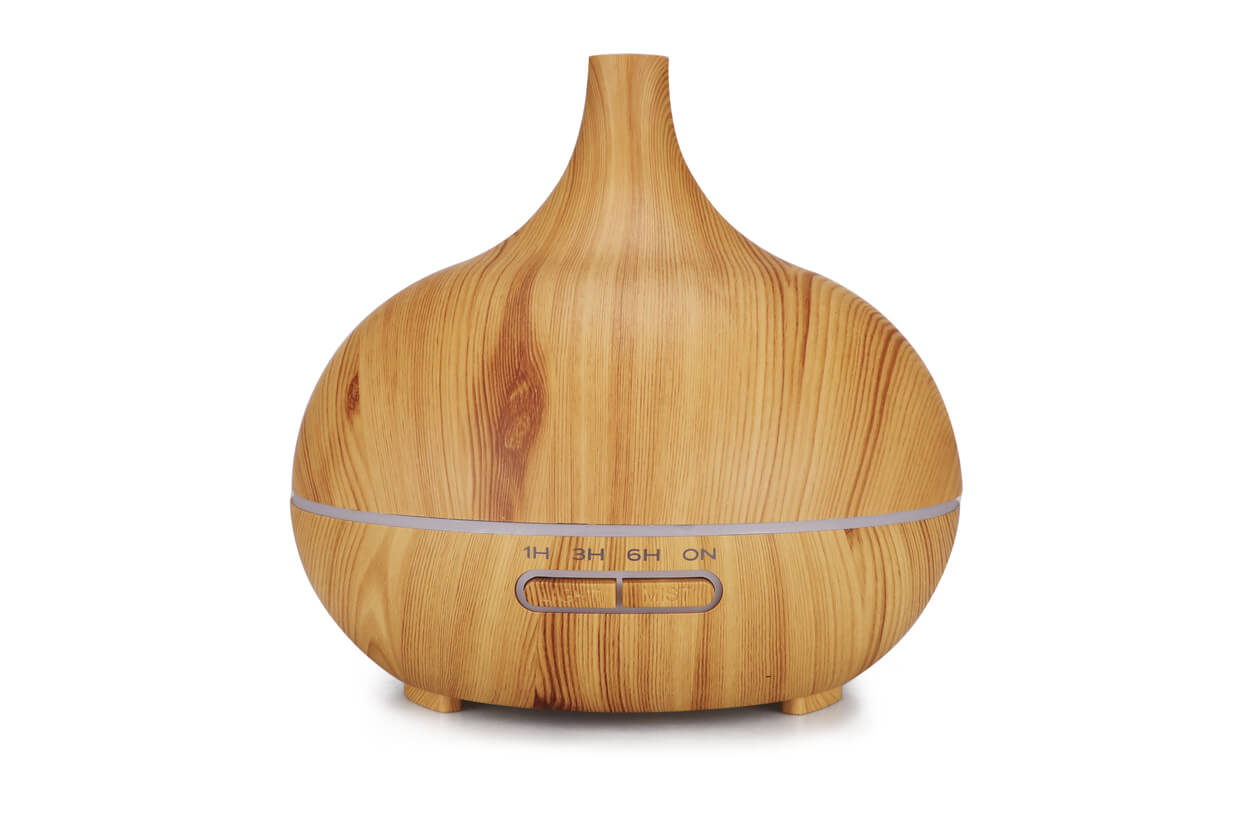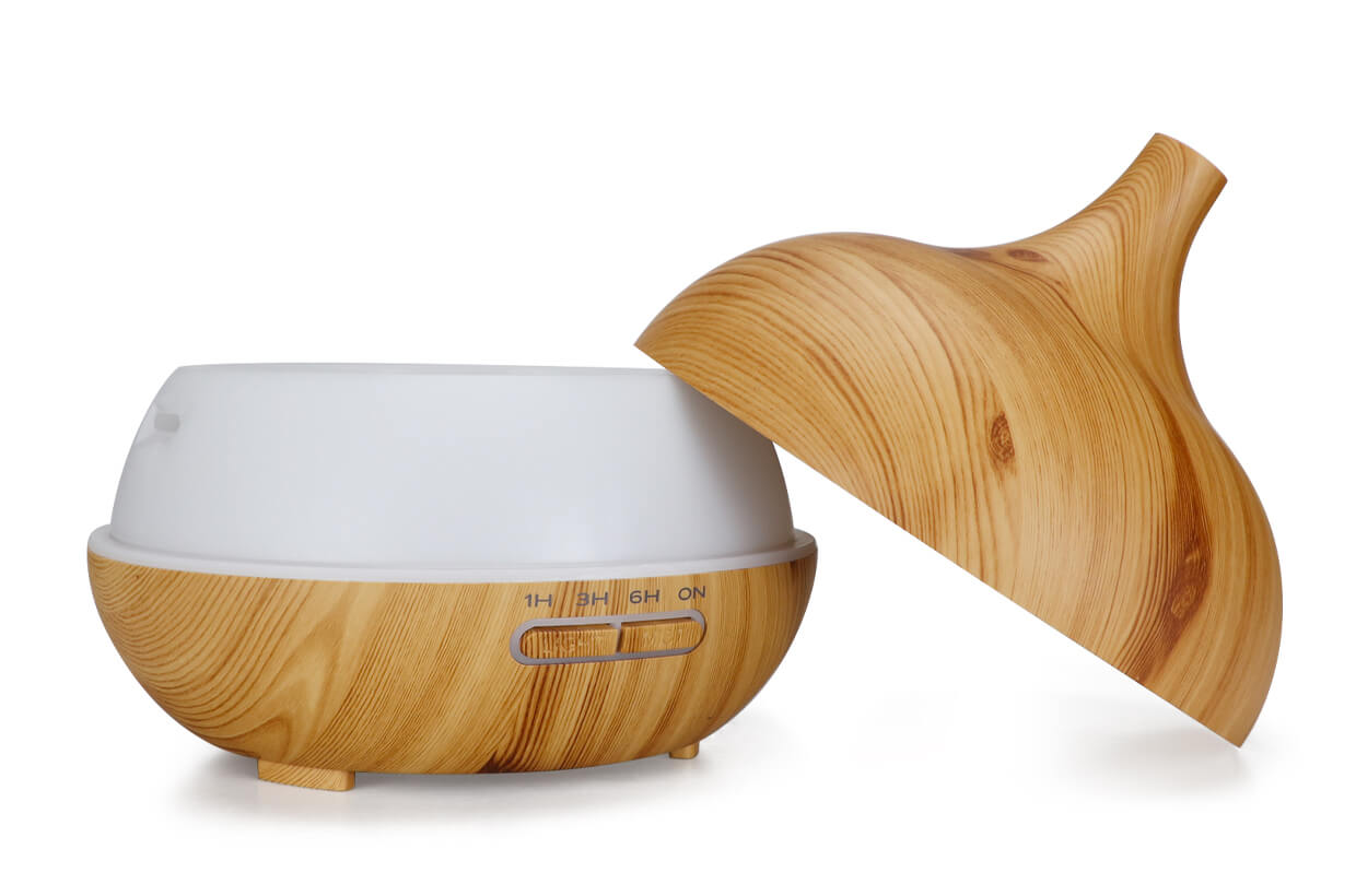 Ultrahangos párologtató. Praktikus és elegáns lakberendezési kellék, halvány barnafa színben.